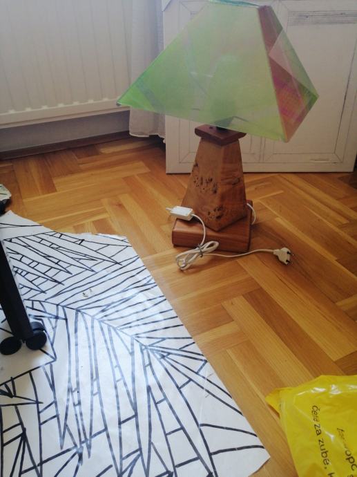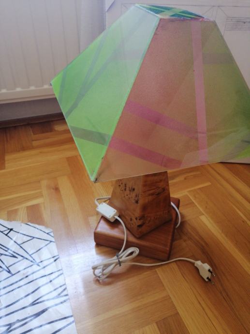 Dizajnerska, ručni rad stolna lampa, materijal drvo i staklo