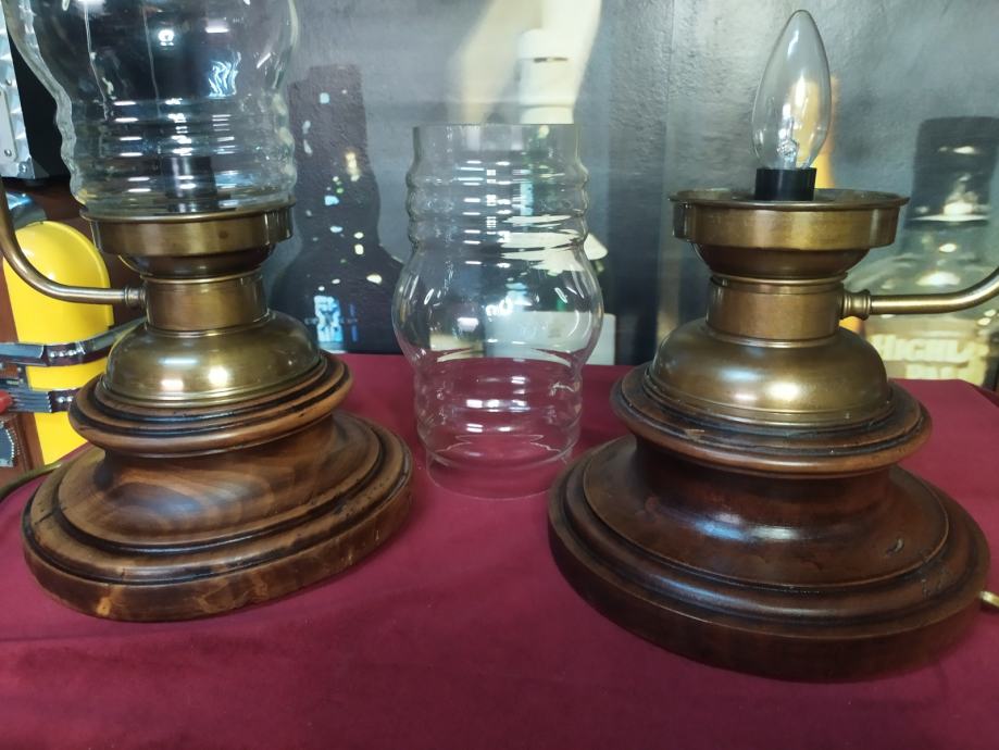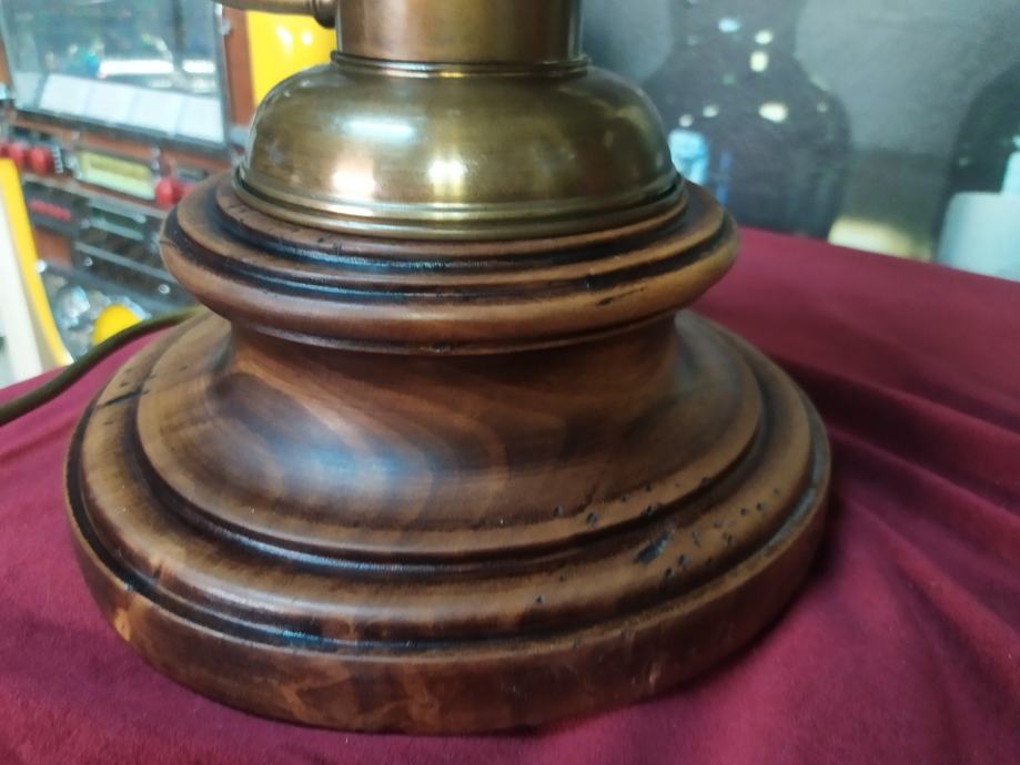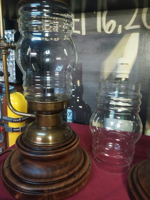 Vintage stolne lampe antiknog rustikalnog izgleda... izrađene od mesinga i masivnog drva i staklenog sjenila..
