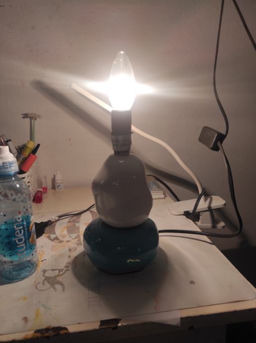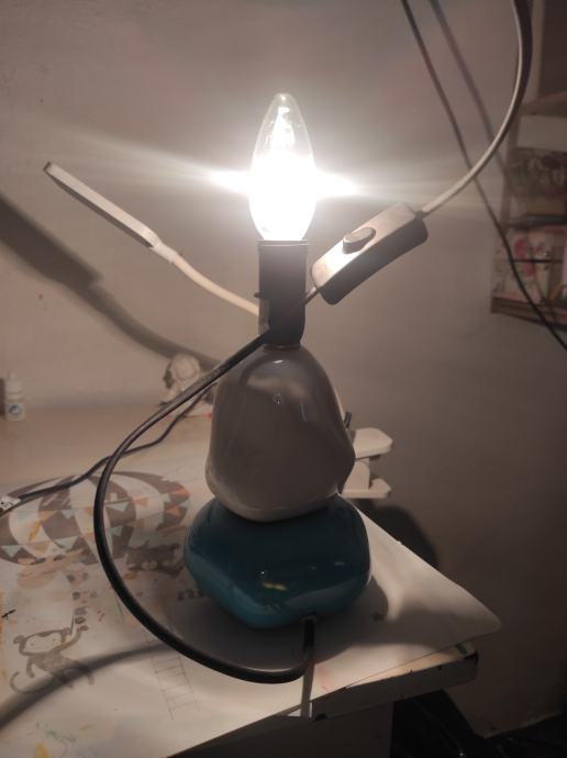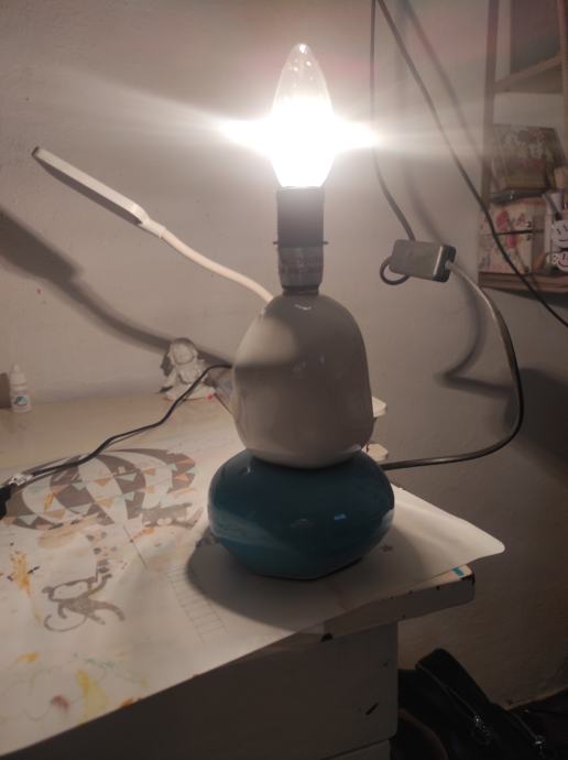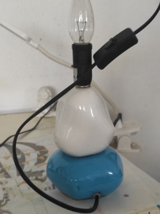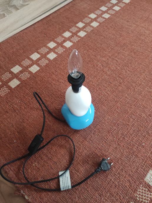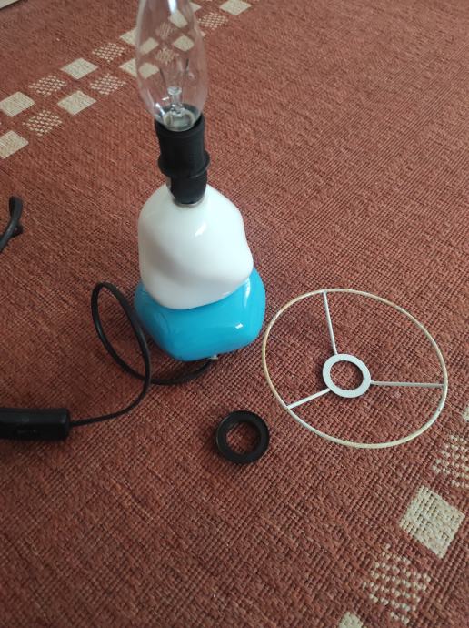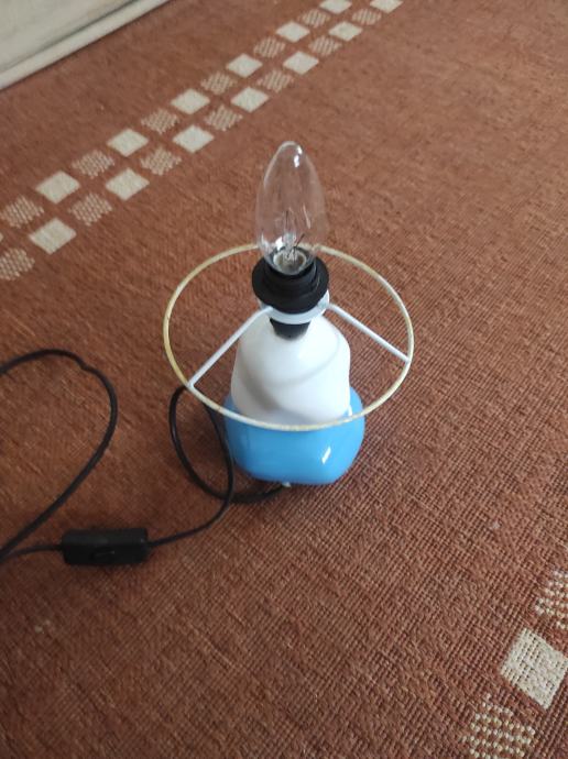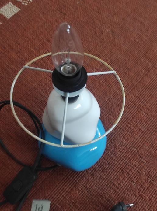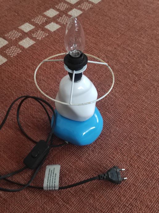 Jako dobra stolna lampa, skinuo platno ili sjenilo pa tko kupi neka si sam stavi platno ili nesto drugo po svom izboru,ja sam imao drveno sjenilo( vidi u slikama) koje dajem iz lampu,ali napominjem da nije original od ove svjetiljke.Za sve informacije nazovite na broj 097-6601365 ili pošaljite upit na Viber ili Njuskalo, a Šaljem Poštom, Tiskom ili u dogovoru sa kupcem.Pogledaj slike,kao nova ,,lampa nije radila sve ukupno par sati i jako je lijepa,plavo- bijeli kamen.Molim pogledaj slike !!