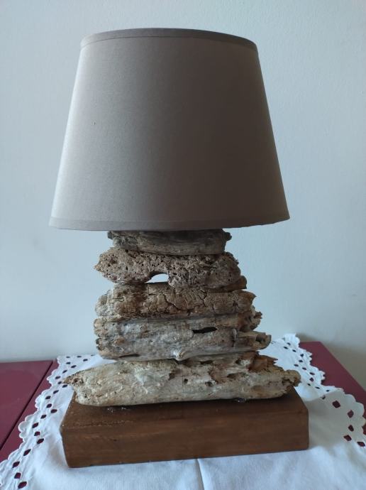 Ova prekrasna lampa nastala je od naplavina skupljenih na obali mora.Pretvorena u ovu jedinstvenu i unikatnu svjetiljku predstavlja ukras svakog doma.Dimenzije su : dužina 26cm × visina 41cm.