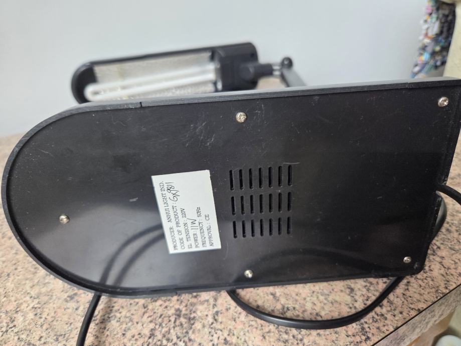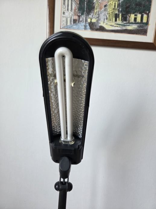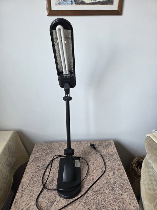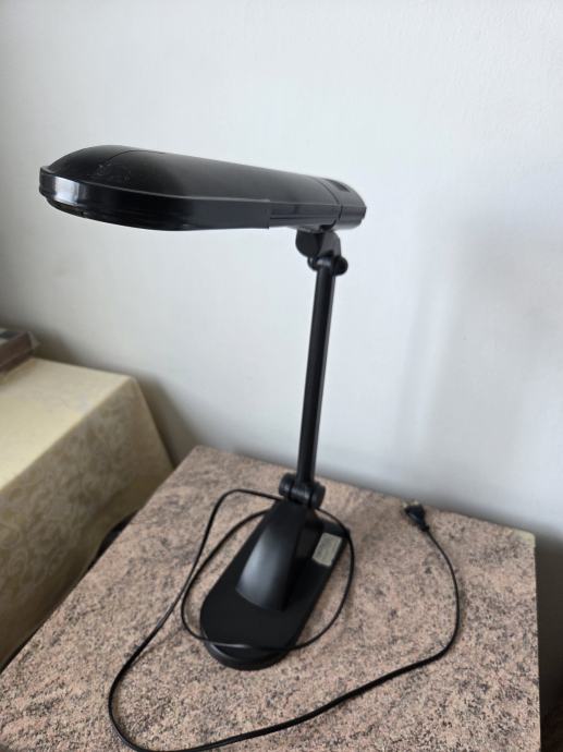 Jednostavna električna i praktična stolna lampama. Lako prenosivih. Crne boje sa savitljive vratom prema potrebnom nagiba. Visina vrata 40cm. Dužina svjetiljke 30cm. Prikladna za sve potrebe.