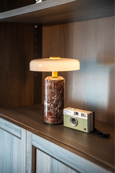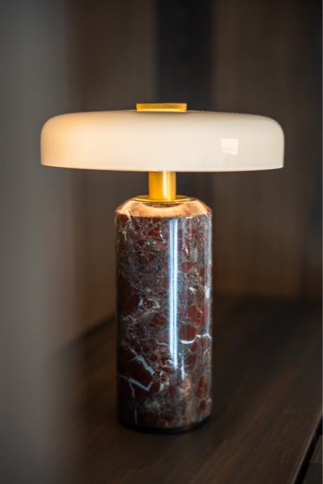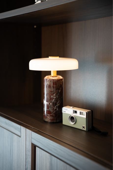 Svjetiljka je bežična i punjiva, što omogućuje fleksibilnu upotrebu u dnevnom boravku ili spavaćoj sobi. Snažna baterija osigurava dugo trajanje svjetla, a puni se jednostavno putem USB-a.