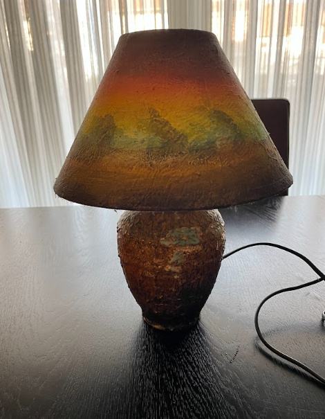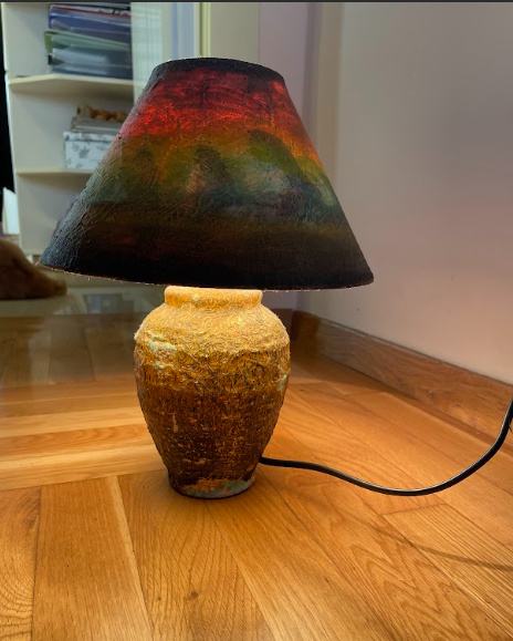 Stolna lampa, ručno oslikana, zanimljivog izgleda.