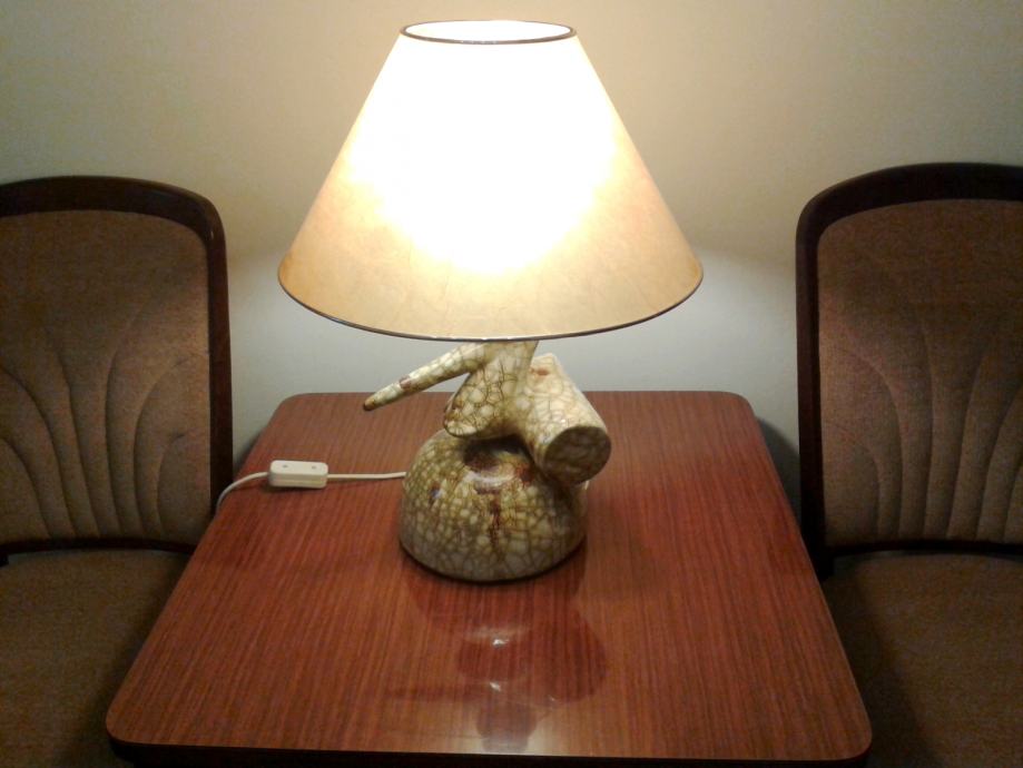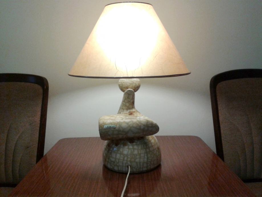 Kupljena je pod unikatnom stolnom lampom i ručnog rada.