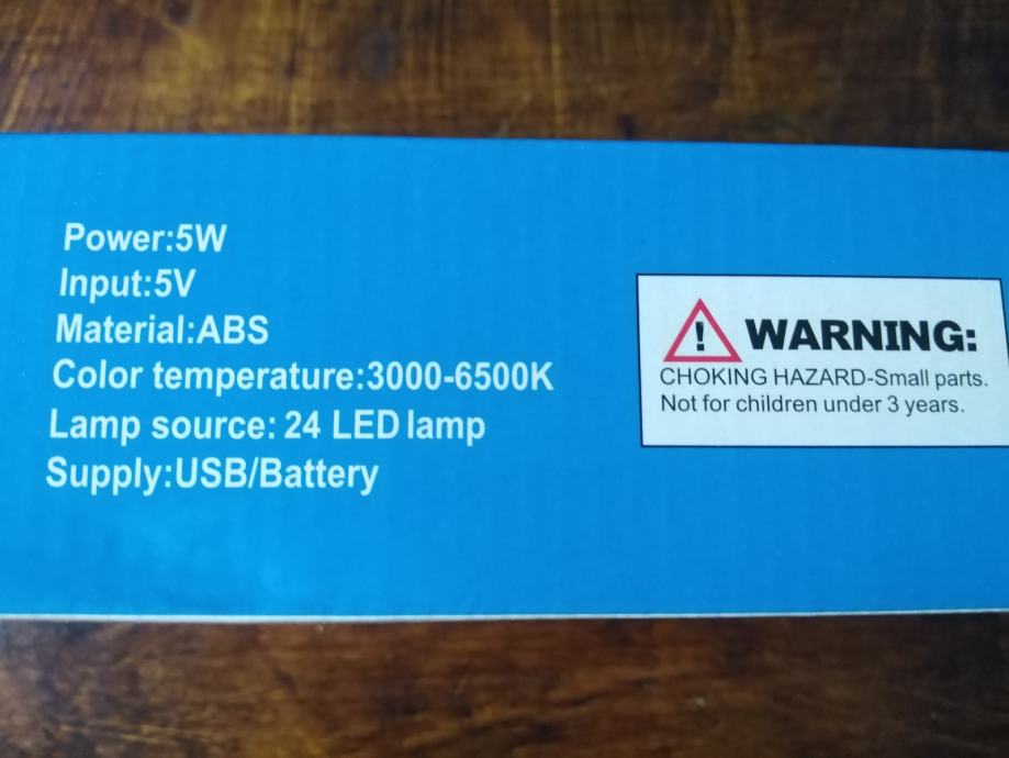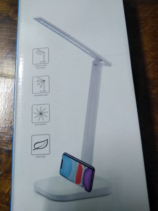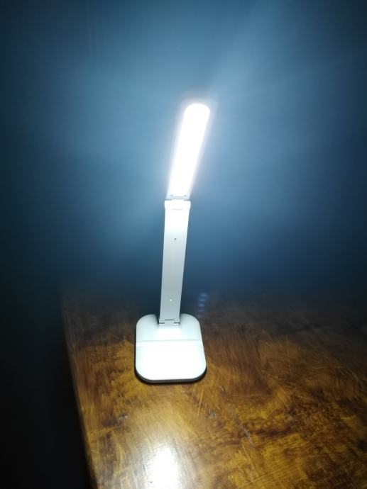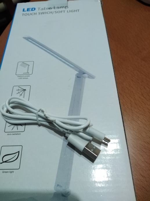 Stolna lampa koja se puni na usb a moze da radi i bez usb-a jer ima svoju bateriju u sebi snaga je 5 w i moze da bude 3000 do 6500 k znaci ima cisto bijelo svijetlo i ima zuto priguseno mozete si sami svijetlo regulisati.Lampa ima i drzac za mobitel a svijetlo se moze pomicati za vise stupnjeva