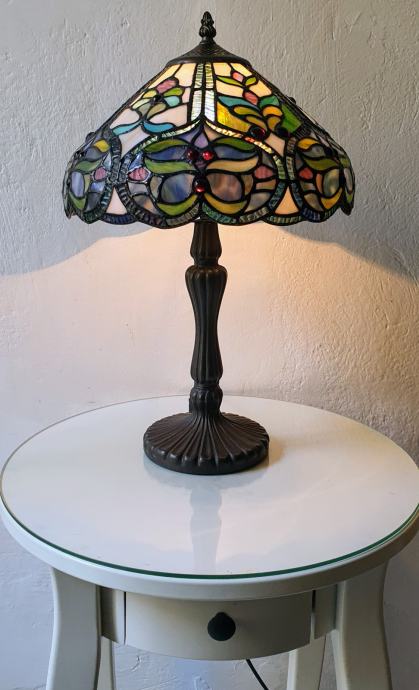 Predivna stolna lampa u Tiffany stili sitni uzorak plavo zelena