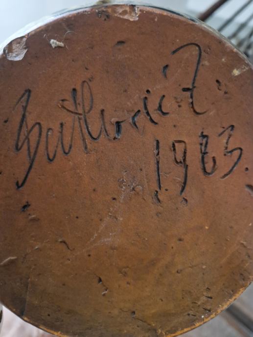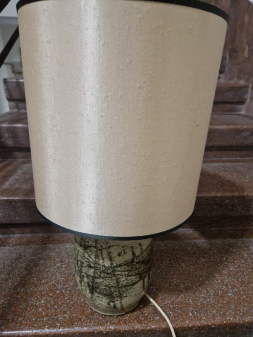 Ispravna i radi iako je žica stara i originalna pa bi ju možda trebalo promijeniti. Visina keramike oko 31 cm a sa širmom oko 59 cm. Jako rijetka lampa...poruke na whatsapp...