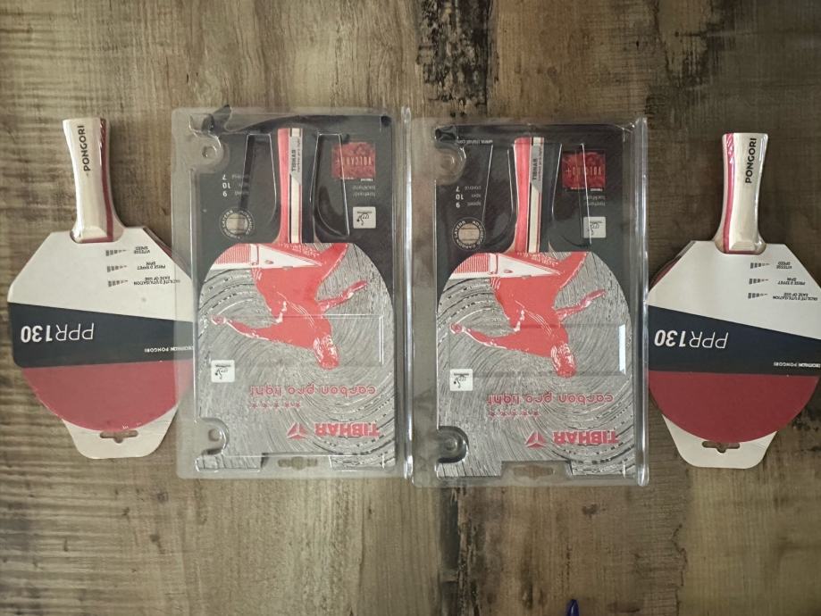 Plus 4 reketa, 2 Tibhar carbon pro light, 2 Pongori Ppr 130, sve novo.