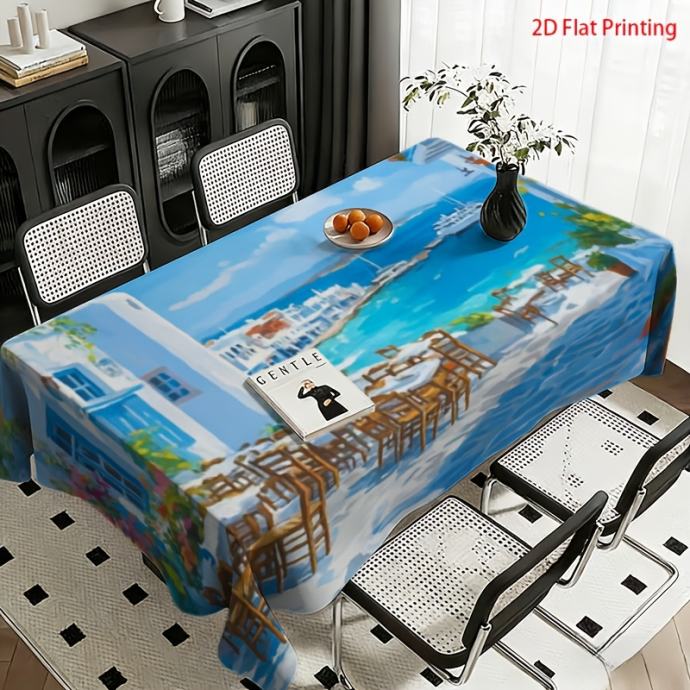 1 kom. Mediteranski stolnjak prikladan za blagovaonski stol, stolić za kavu, vanjski piknik - lagani, otporni na ogrebotine, perivi u perilici rublja, pravokutni stolnjak s printom mediteranskog grada (stolovi, radni stolovi, kampiranje) - lako se čisti, dekorativni
