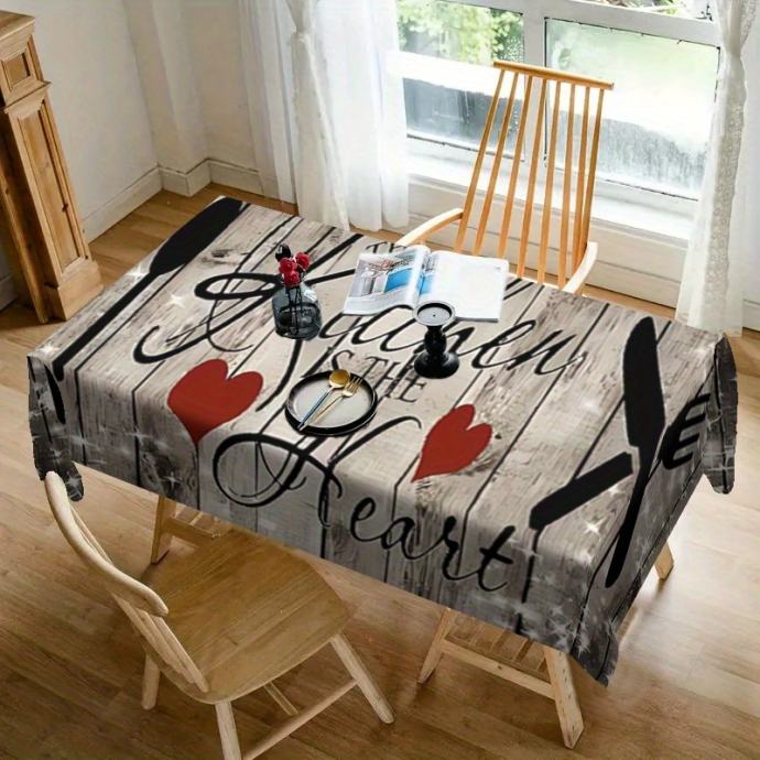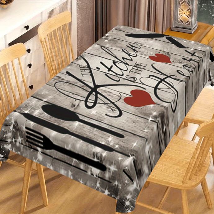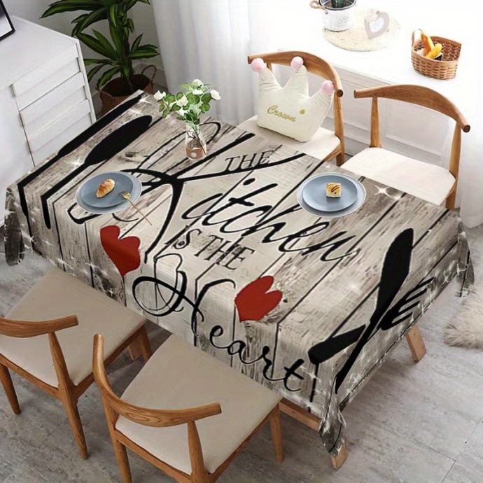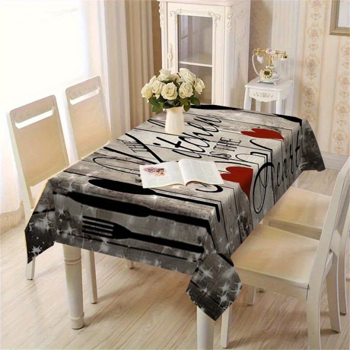 1 kom stolnjaka, pribora za jelo s noževima i vilicom, dizajn s tiskanim tekstom, strojno - pravokutni stol pogodan za unutarnju i vanjsku upotrebu, svakodnevne obroke, zabave i dekoraciju za večere
