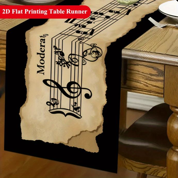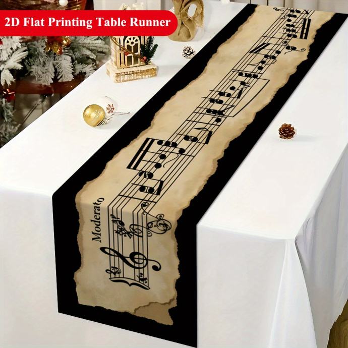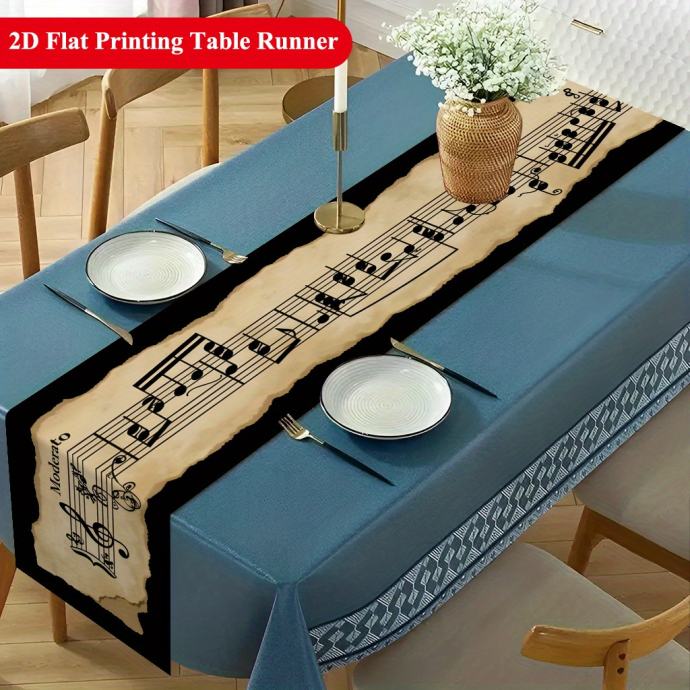 1 komad 2D stolnjaka s notama klasične glazbe, pogodan za blagovaonice, stoliće za kavu ili blagovaonske stolove, TV ormariće i ukrase za festivale i obiteljska okupljanja, jednostavan za čišćenje