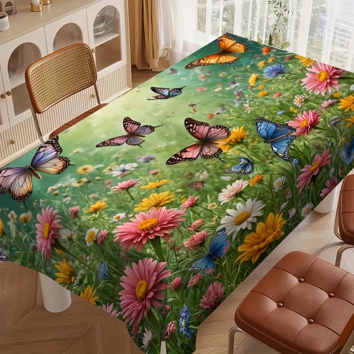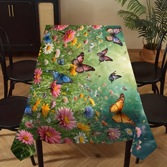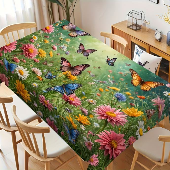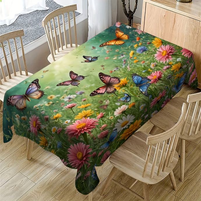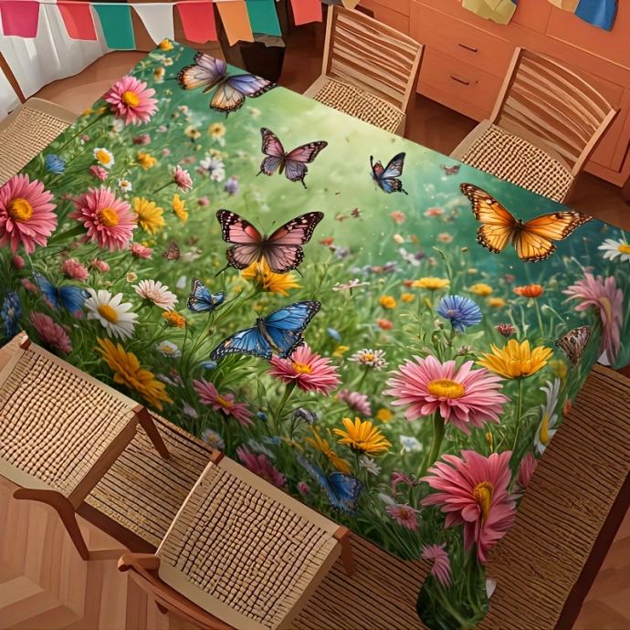 1 komad, stolnjak s temom raja i prekrasnim otiscima prirodnih prizora, reljefni rubovi, poliesterska tkanina, pravokutni oblik, pogodno za uređenje doma, uređenje kuhinje, vanjske vrtove, svečana okupljanja i uređenje banketa u restoranu