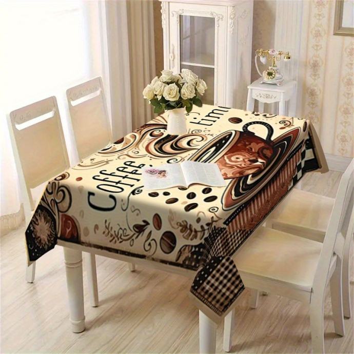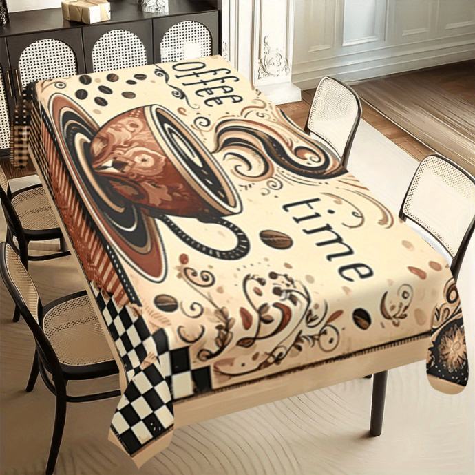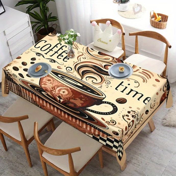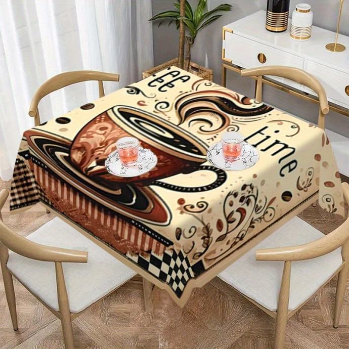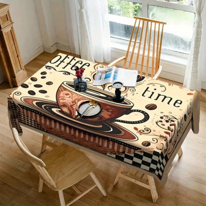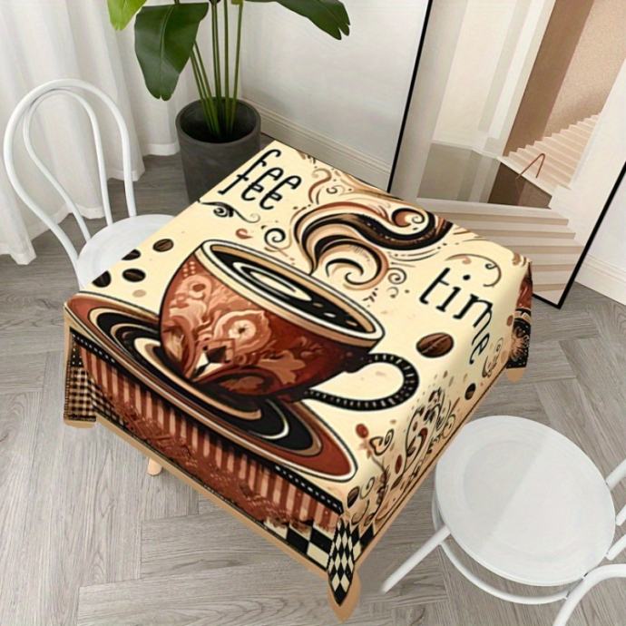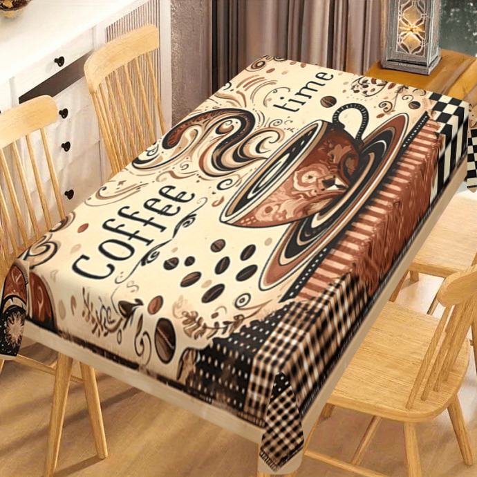 1 komad stolnjaka s uzorkom šalice za kavu | Poliester, strojno izrađen, jednostavan za čišćenje, idealan za kuhinju, restoran, zabavu, praznik, poklon, unutarnju i vanjsku upotrebu