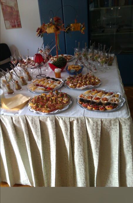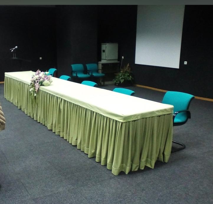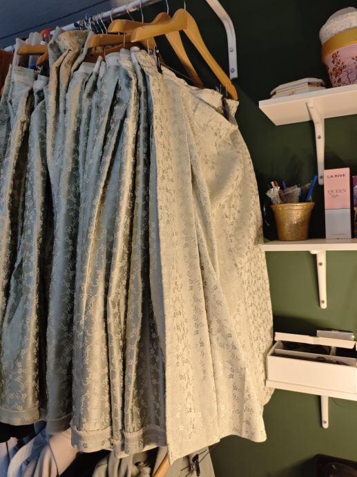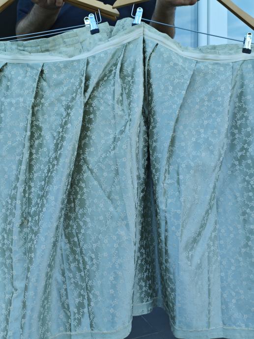 Svijetlo zeleni abažur oko švedskog stola rađen po narudžbi od vrhunske tkanine....damast