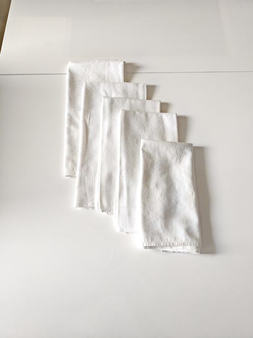 5. Dvije iste bijele salvete od damasta, sa teksturom, 50 x 52 cm, jedna 2.5 €