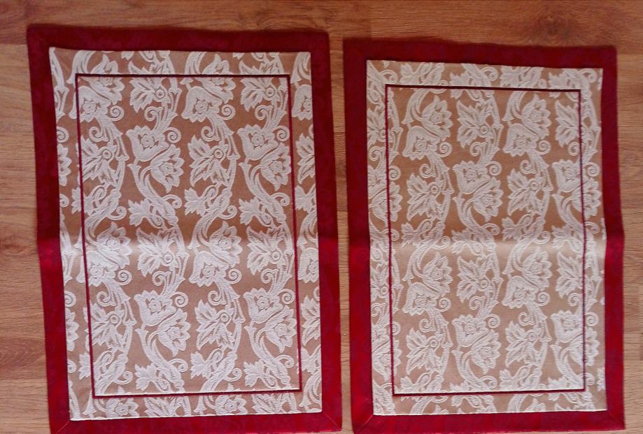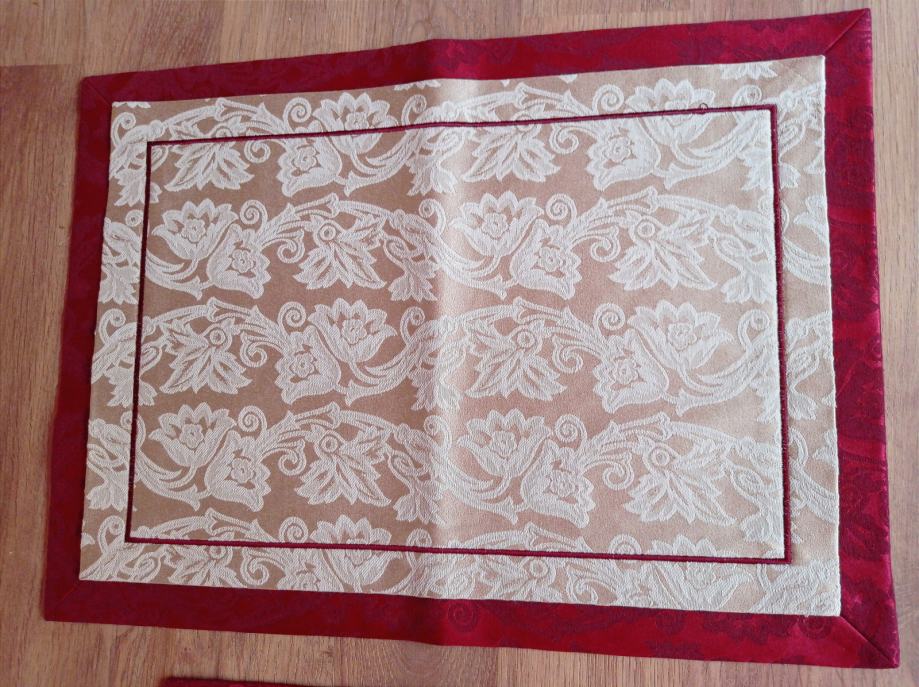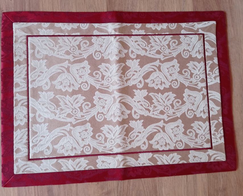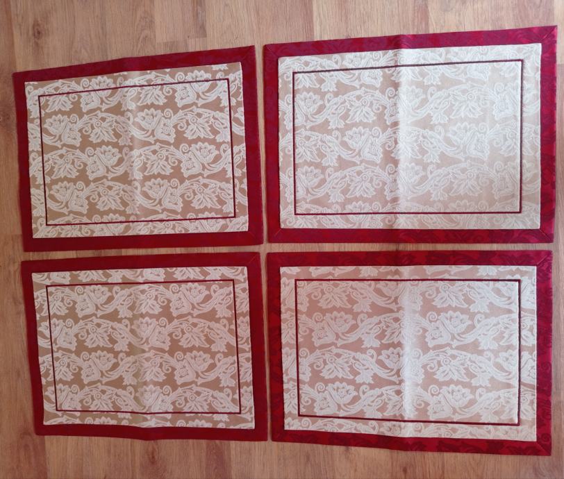 Komplet od 4 komada nova vrlo kvalitetna brokatna podmetača za stol,poznate marke TCM.Dimenzije su 48 x 35 cm.Cijena za komplet je 14E.