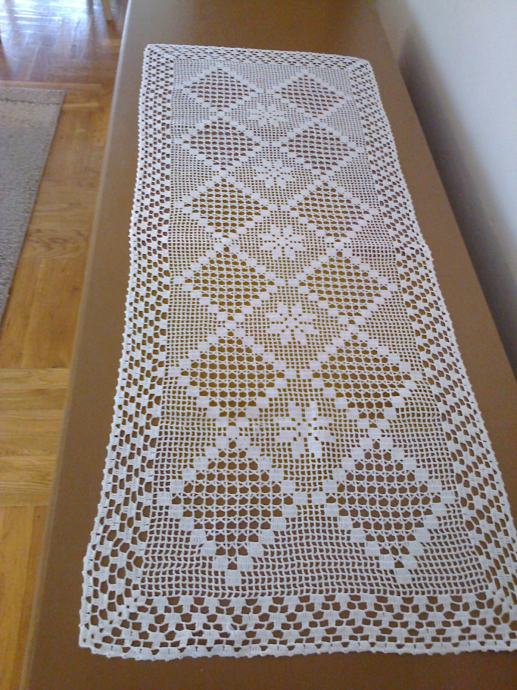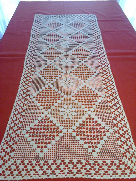 PRODAJEM HEKLANI DUGAČKI MILJE,BIJELE BOJE 106X41 cm.