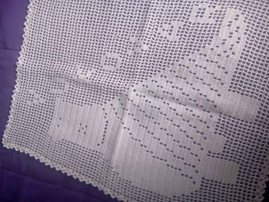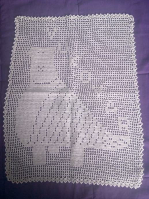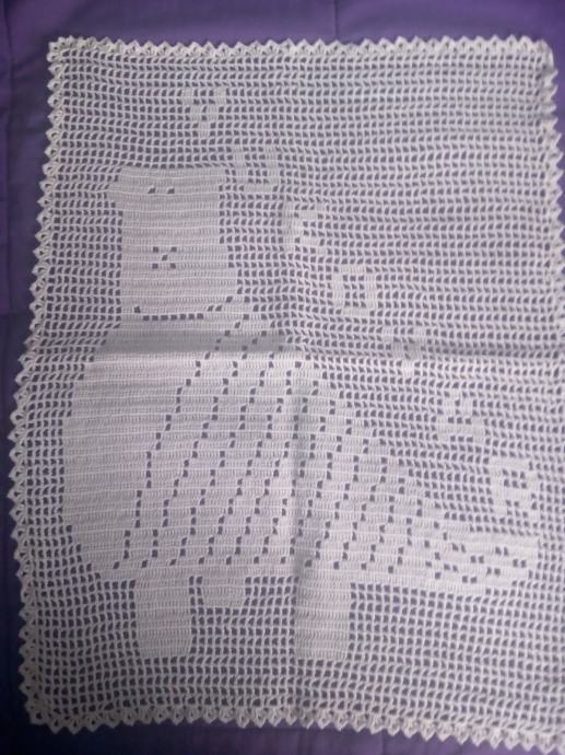 Heklani tabletič motiv Vukovarska golubica bijeli od korica koralj br. 15 48 x37 cm