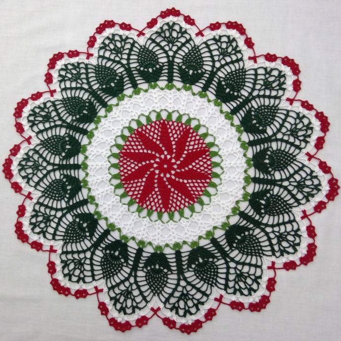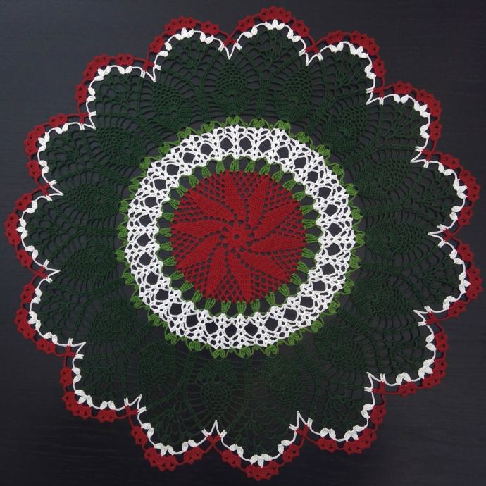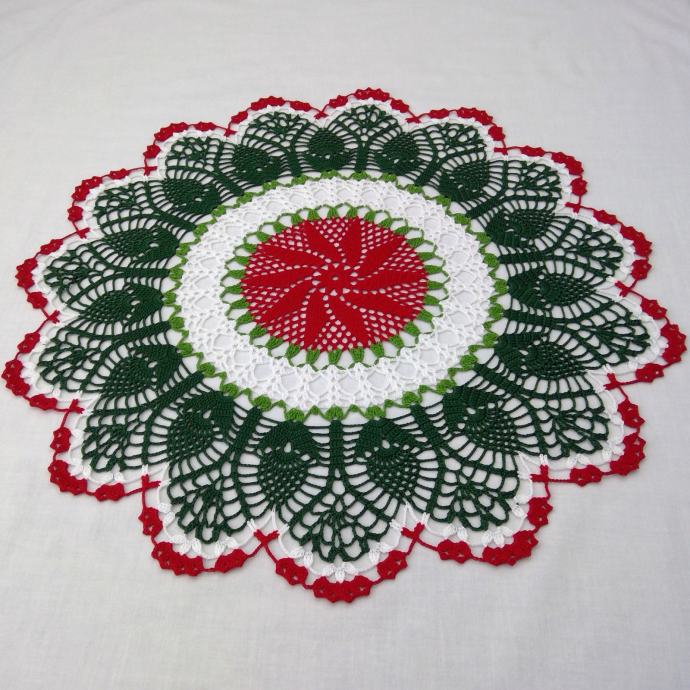Heklani Tabletić (ručni rad, okrugli, 57 cm) - Božić, Nova Godina