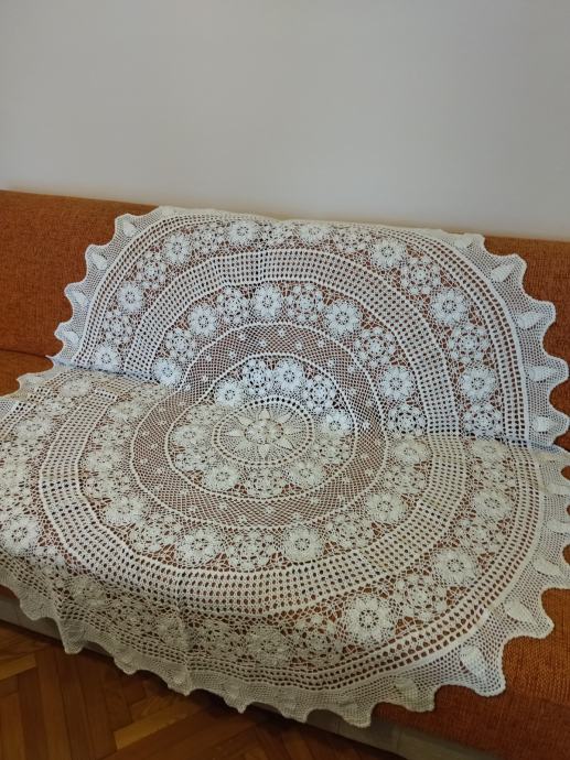 Vrlo lijep okrugli heklani stolnjak promjera 140 cm.