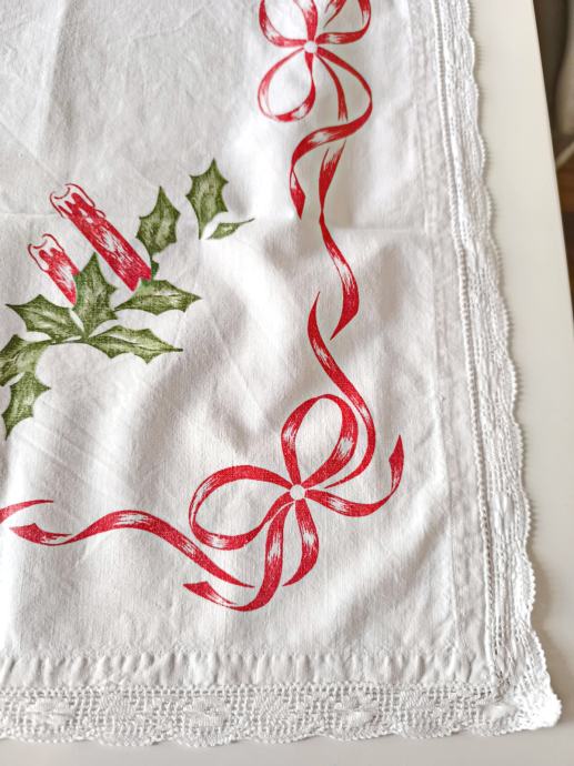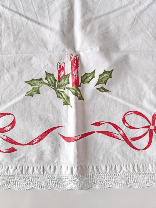 Pamućni stoljnjak dimenzija 83 x 83 cm iz 1960.- tih - božićni motivi