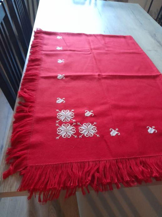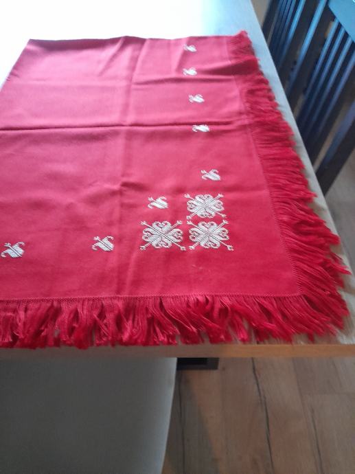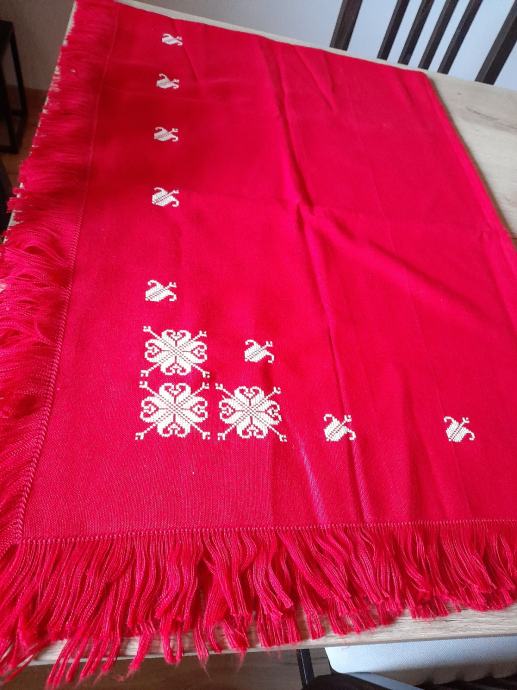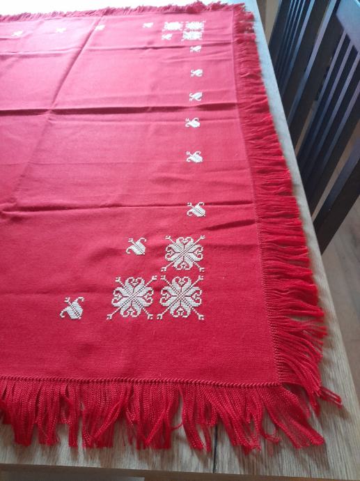 Prodajem stoljnjak rucni rad na leakrilu , boja crvena sa bijelim krizicama, nije koristen, dimenzije duzina 178 cm sirina 124 cm, cijena 40 €, inf na tel 035 260 202