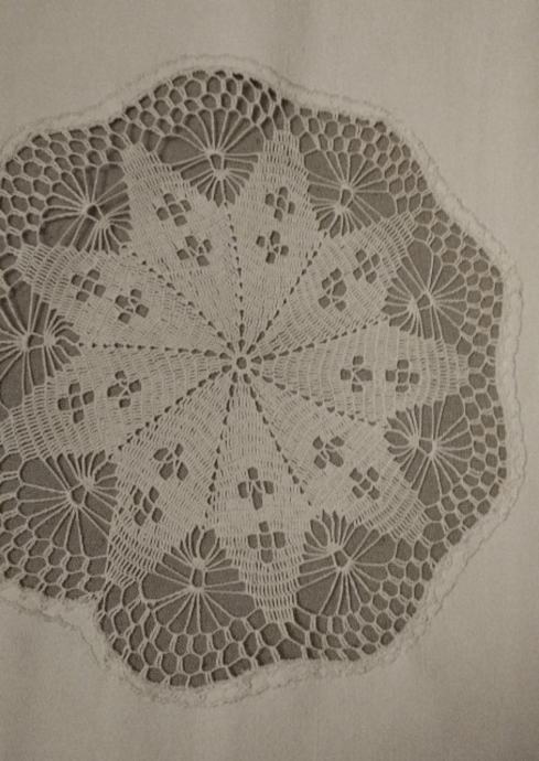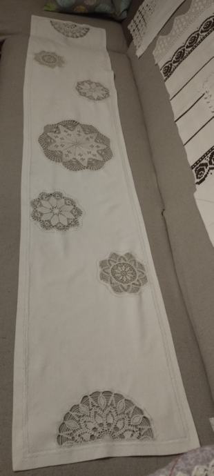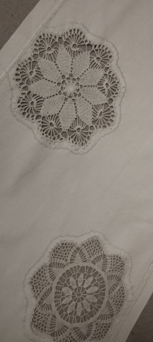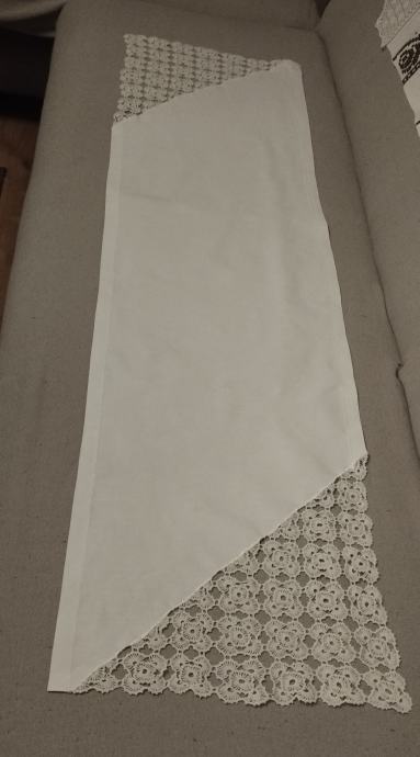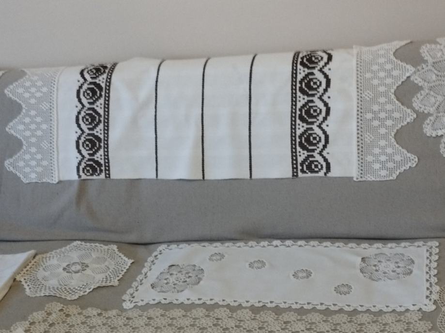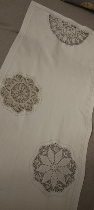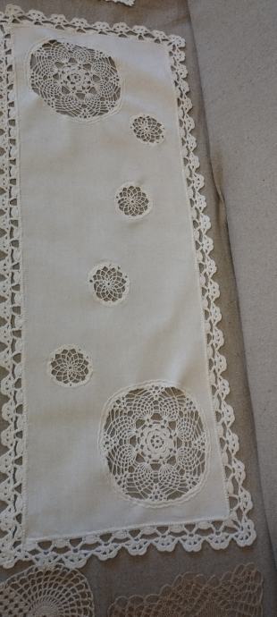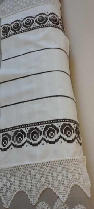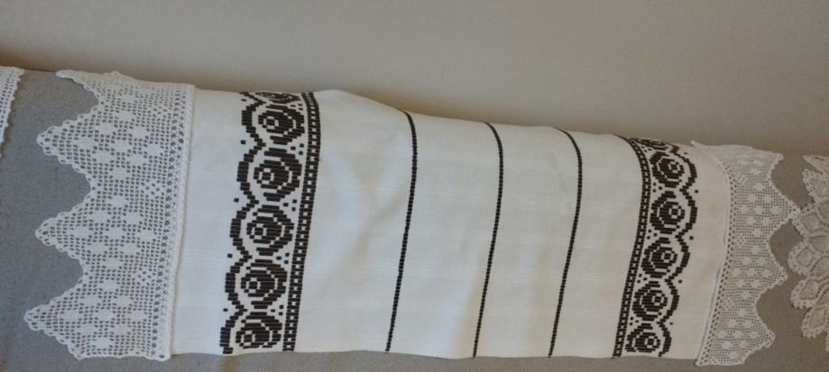 Fino domaće tkano platno sa ručno izrađenom čipkom.(bijelo- smeđe),