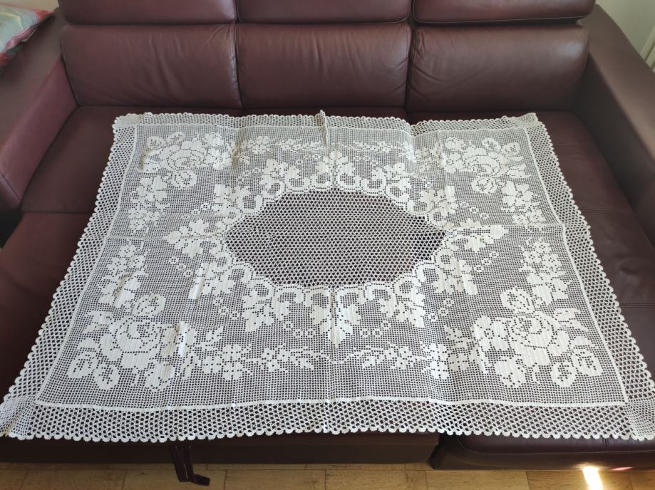 Veliki stolnjak, četvrtasti, heklani rubovi i sredina , dim. 200cm*140cm – 100kn