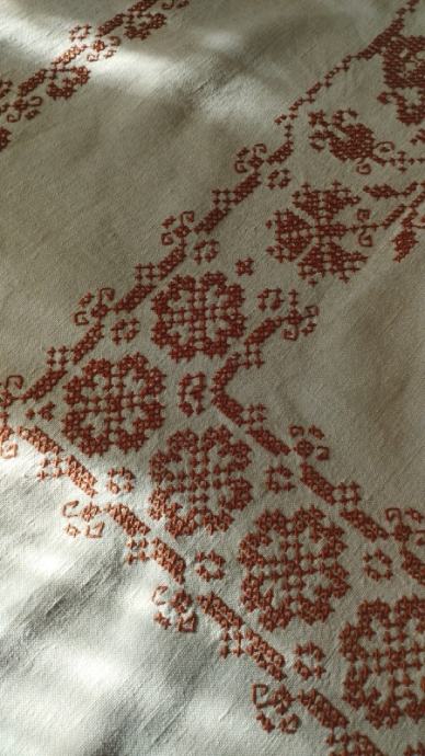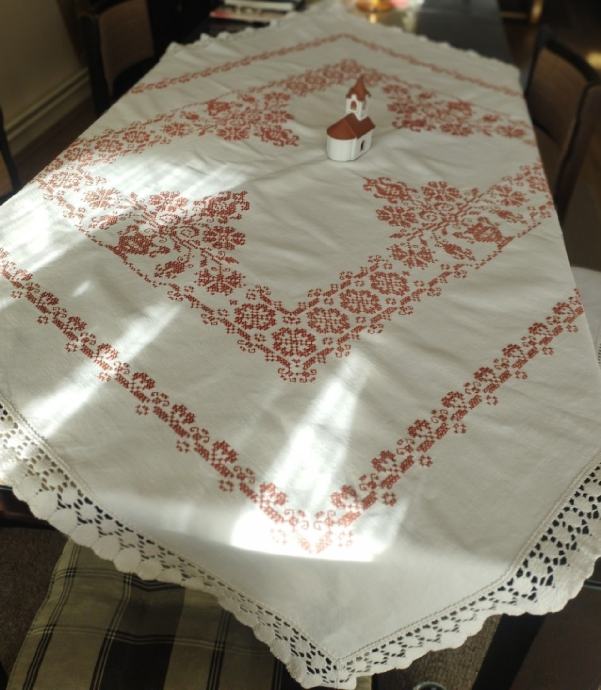 Četvrtasti stoljnak na domaćem lanenom platnu.