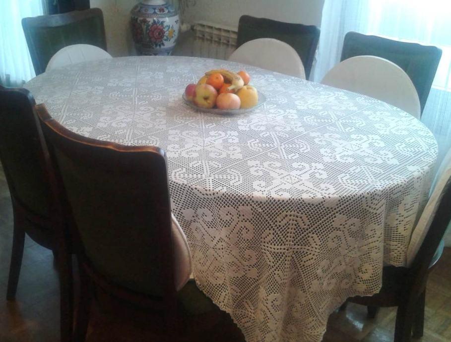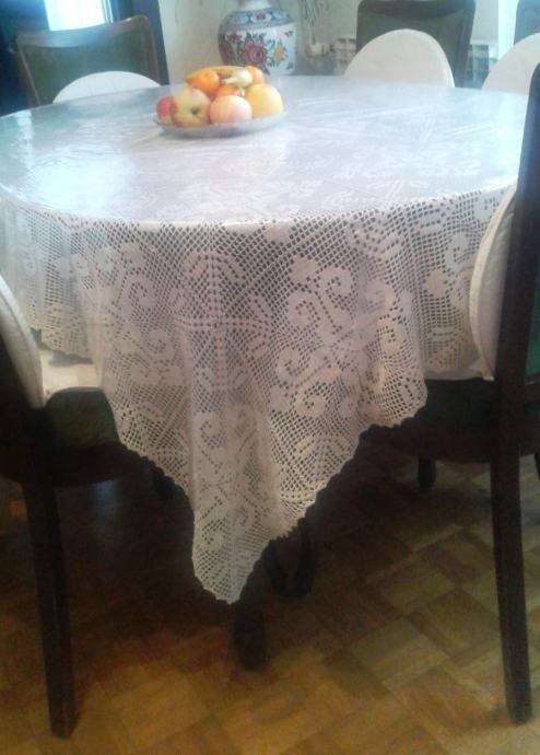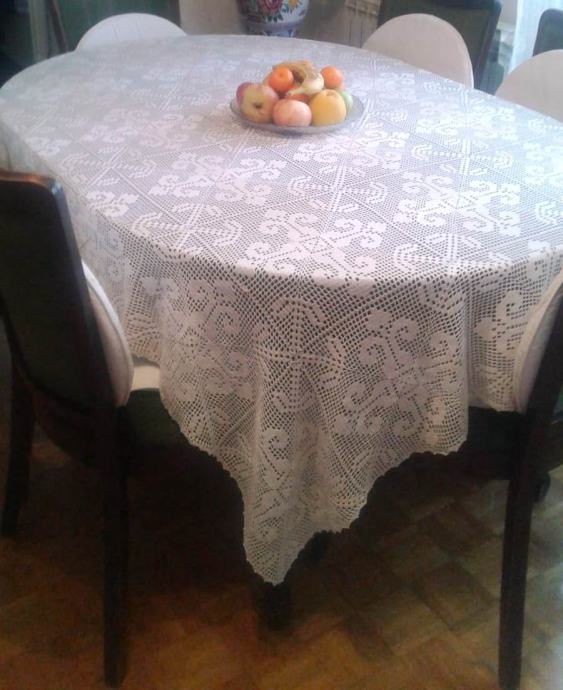 Predivni HEKLANI STOLJNJAK vrhunske kvalitete od bijelog konca, RUČNI RAD - 150x200 cm, sa uzorkom kao na slici, kao nov jer je korišten samo za potrebe fotografiranja za oglas.