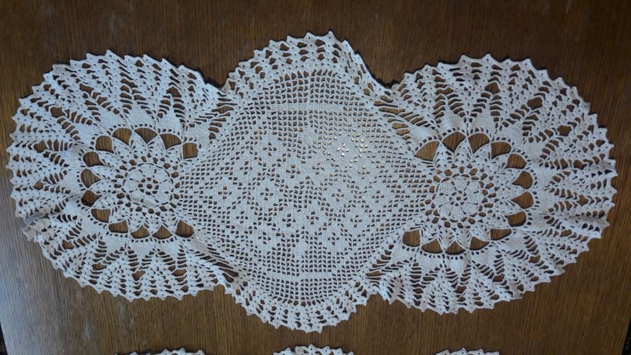 Prodajem ovalni heklani stolnjak dimenzija 40 x 75 cm.