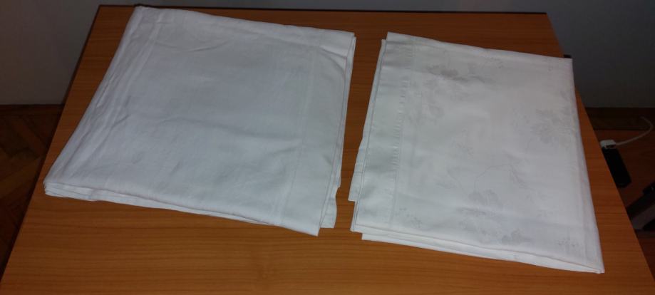 Prodaju se 2 bijela stolnjaka, pamuk, malo korištena, dimenzije 140 x 138, 140 x 125, idealna za kuhinjski stol, dnevni boravak blagovaona i sl, cijena sve u kompletu 2 stolnjaka za 8 eura