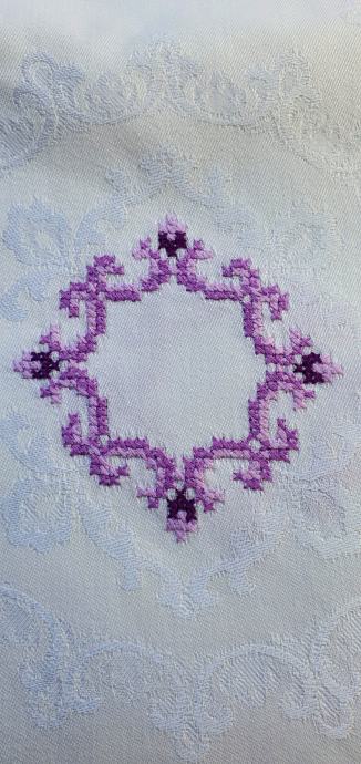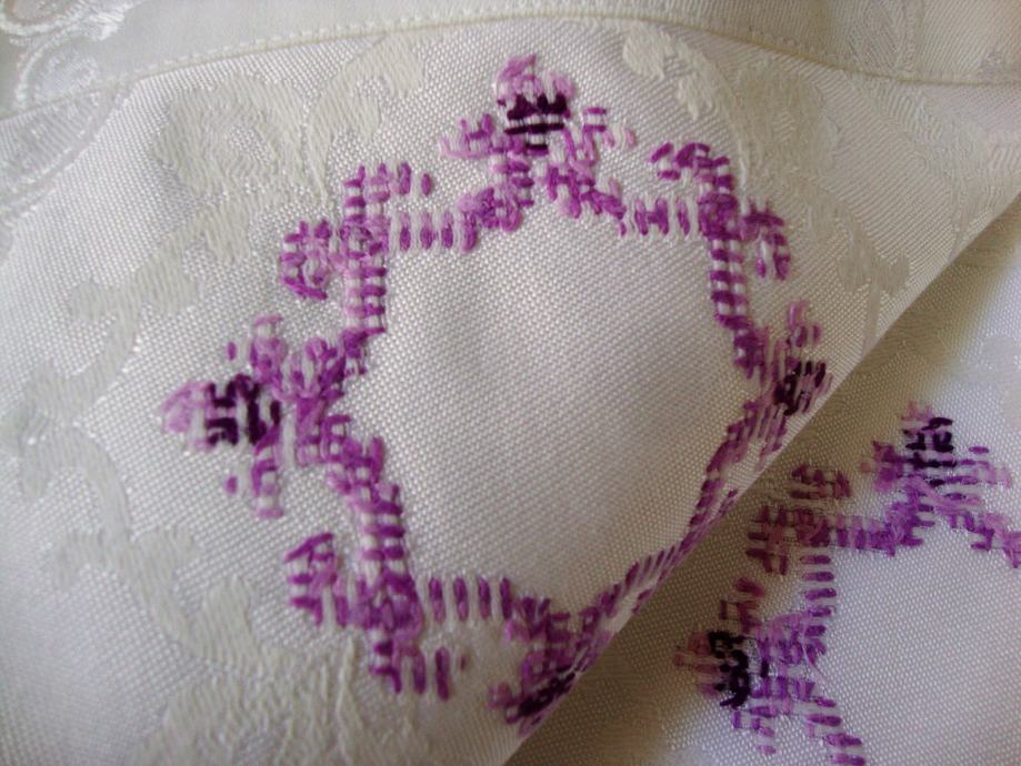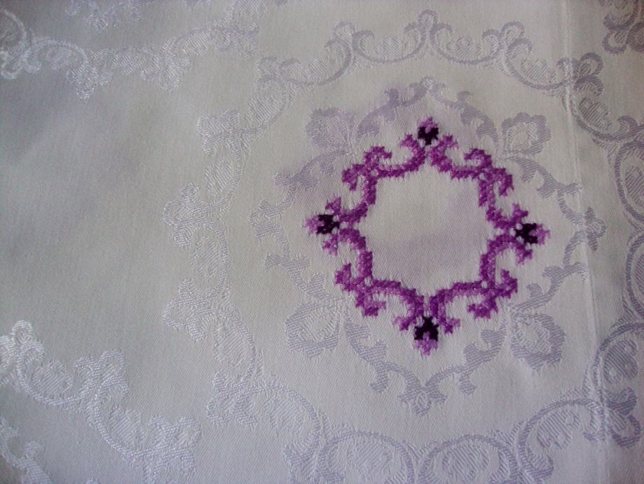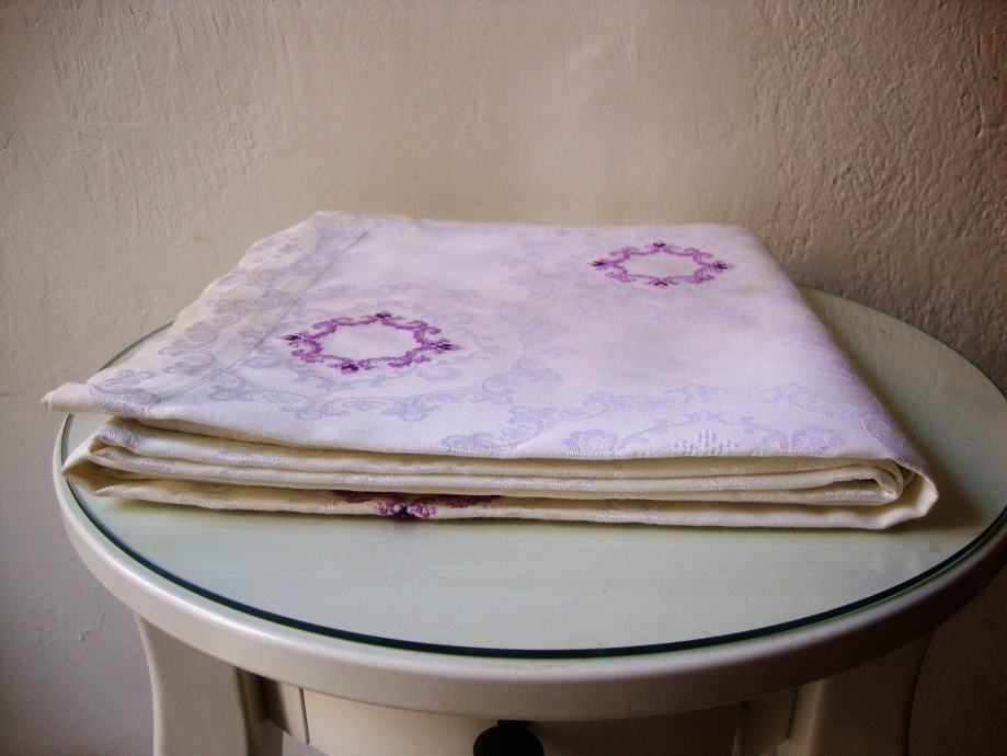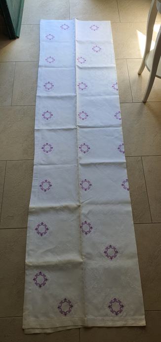DIMENZIJE 124,5 CM X 234 CM VEZEN LJUBIČASTIM UZORKOM CVJETNI SVILENI - DAMAST