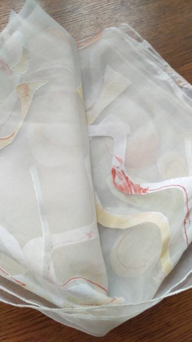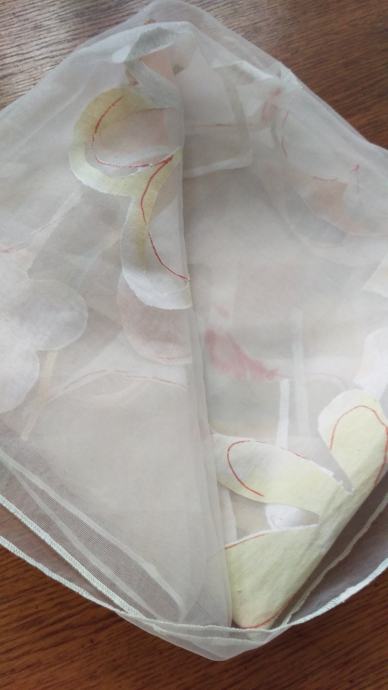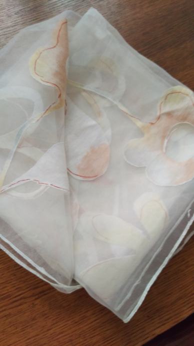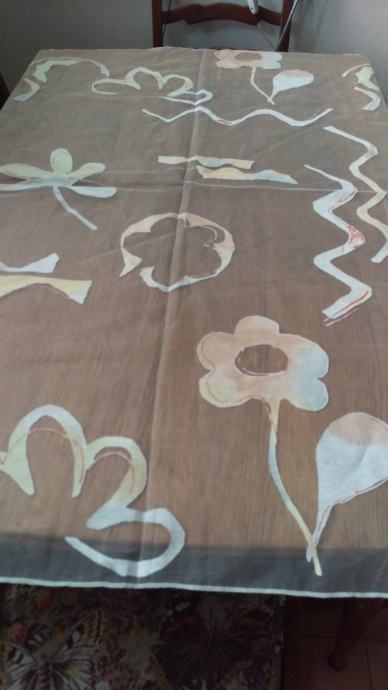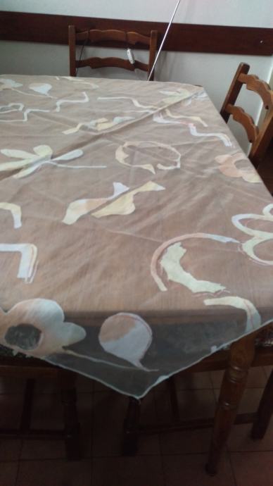 Prodajem novi, fini stolnjak od organze s ukrasnim detaljima u boji breskve, bijele i žute, a dimenzija je 125 x 125 cm. Može se koristit kao stolnjak ili nadstolnjak.