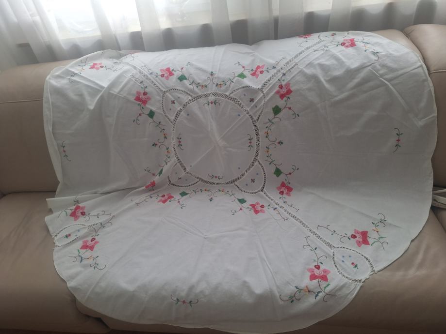 Prodajem par puta koristen pamucni okrugli stolnjak preomjera 170 cm