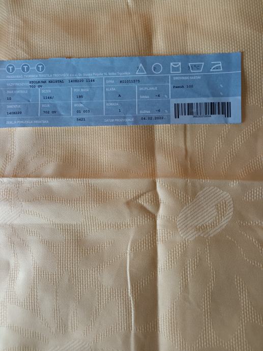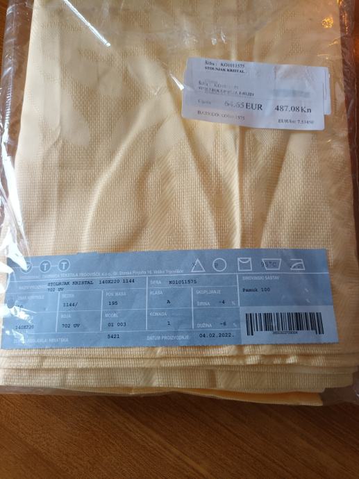Prodajem novi pamucni zuti stolnjak, dimenzije 140x220 cm. Saljem i postom.