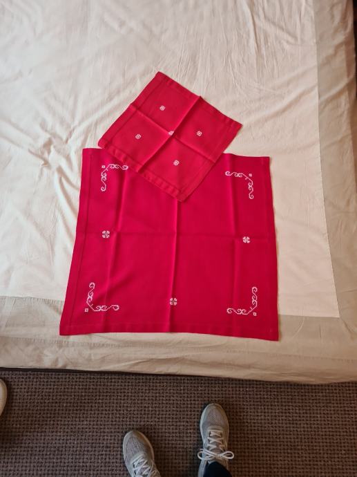 Stolnjak dimenzije 55x55 cm + salvetić 33x33 cm.