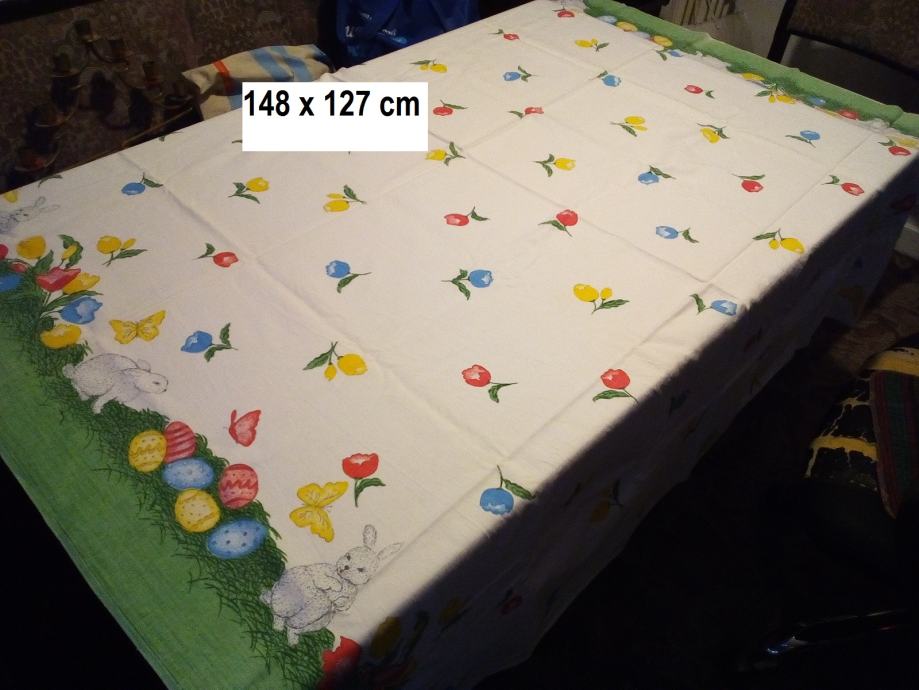 Uskrsni stolnjak, dimenzija 148 x 127 cm. Rabljeno, ali u vrlo dobrom stanju. Isključivo osobno preuzimanje u Zagrebu, ne šaljem poštom.