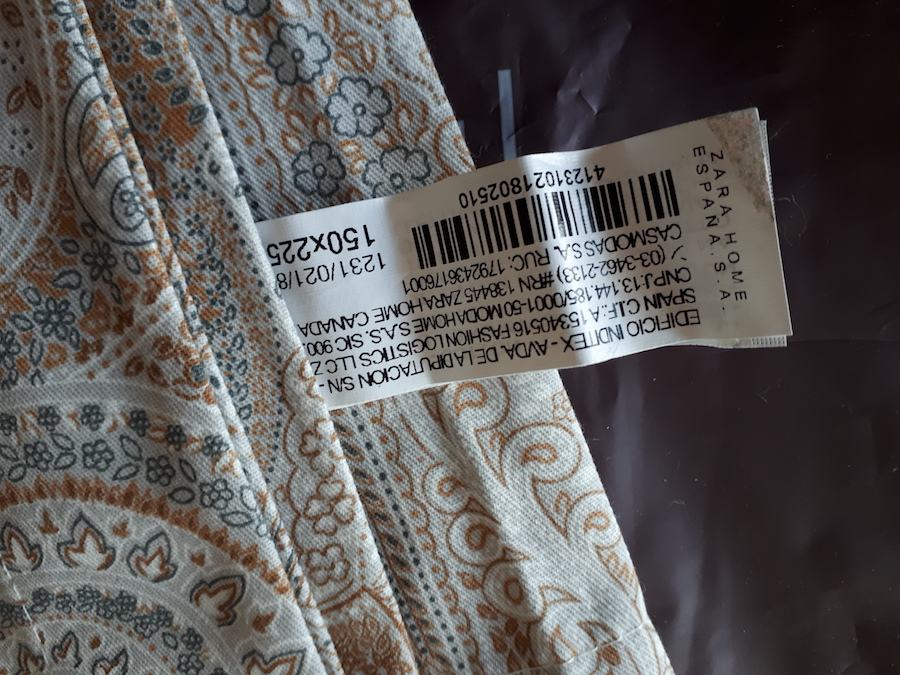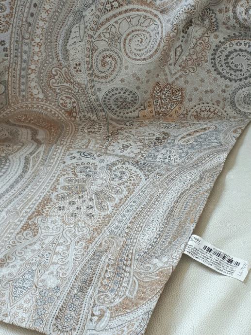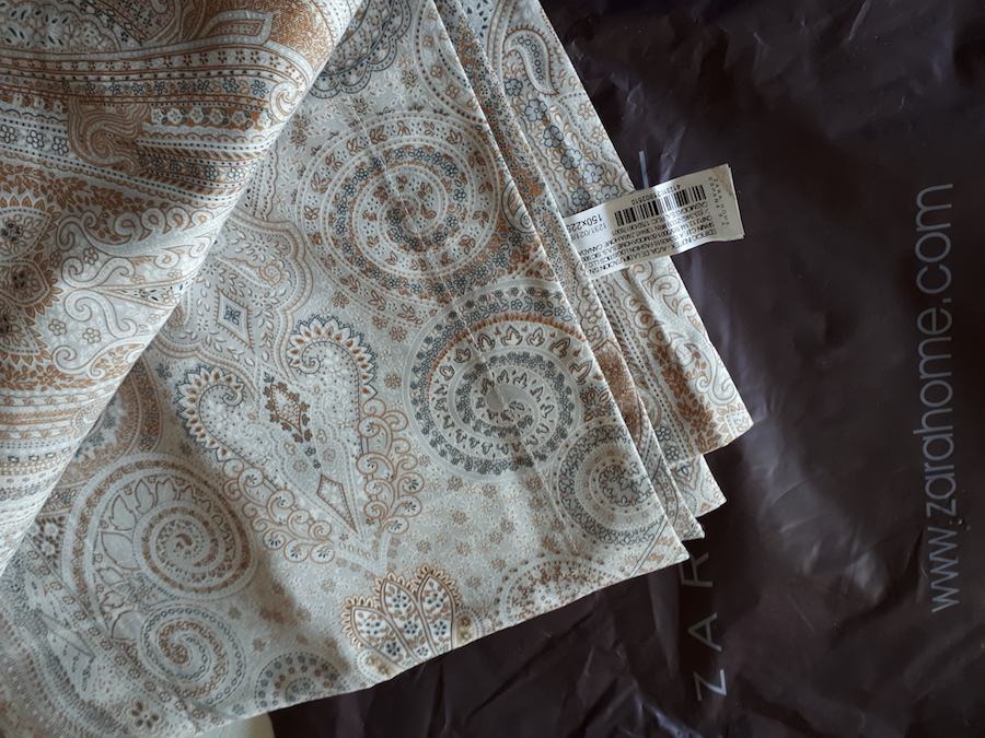 Stolnjak Zara home dimenzije 150x225 cm, nježnog uzorka u sivo-maslinastim tonovima.