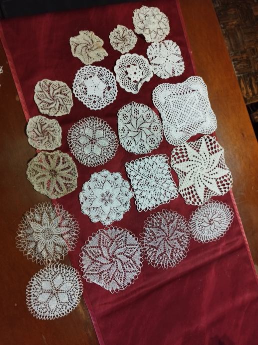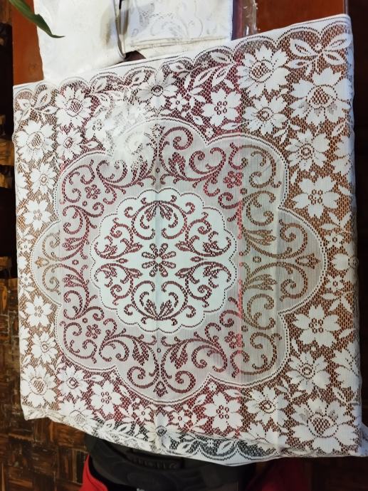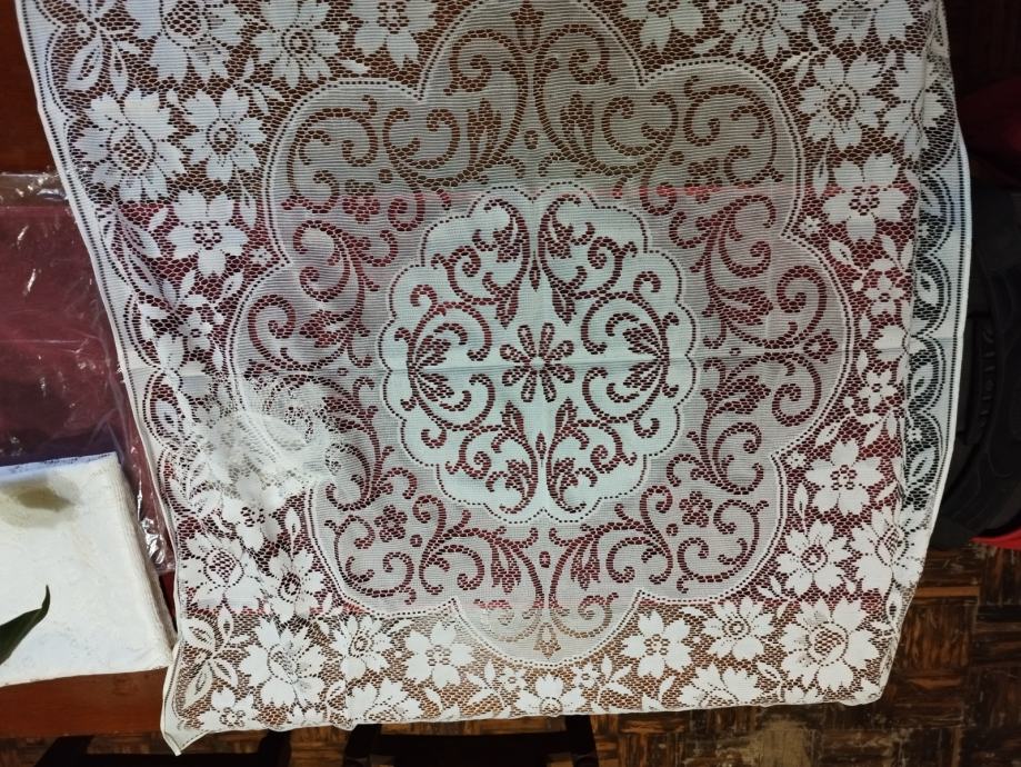 Prodajem i tri manja čipkana stolnjaka ili ukrasna nadstolnjaka, nije ručni rad, dimenzije cca 60x70 cm. Samo je jedan malo rabljen, dva nisu. Sve u odličnom stanju.
