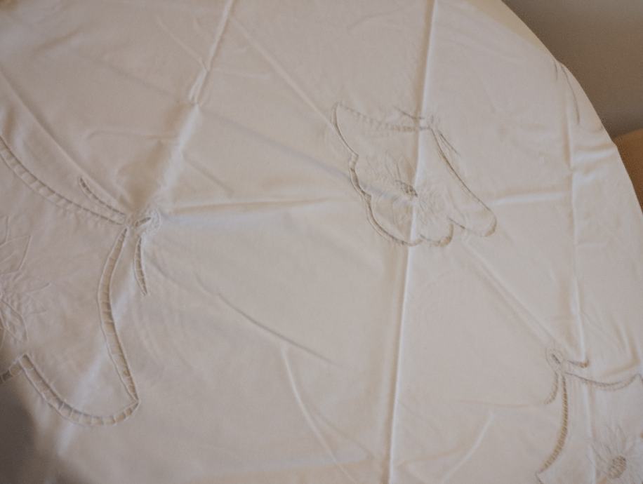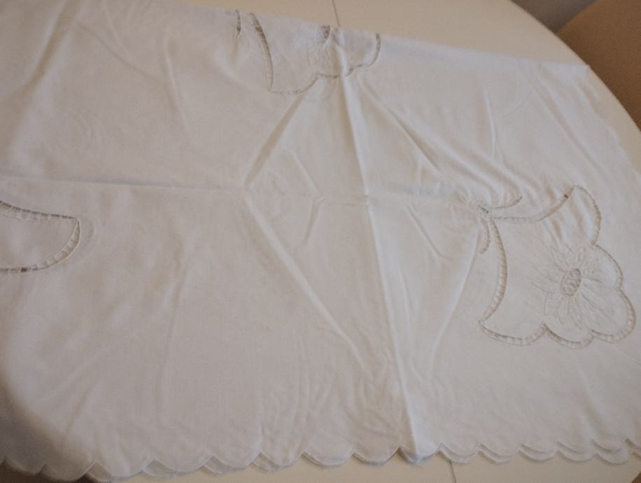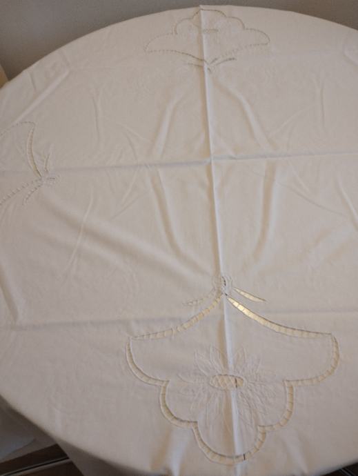 Prekrasan stolnjak bijeli, veliki štikani, dim 200 x 130, malo rabljen
