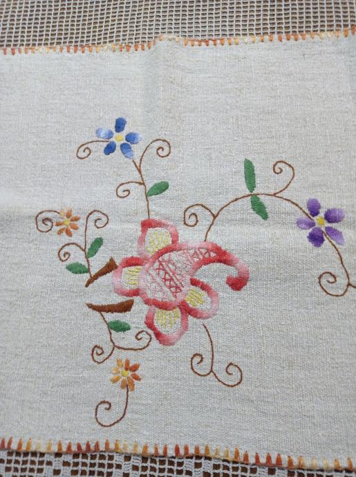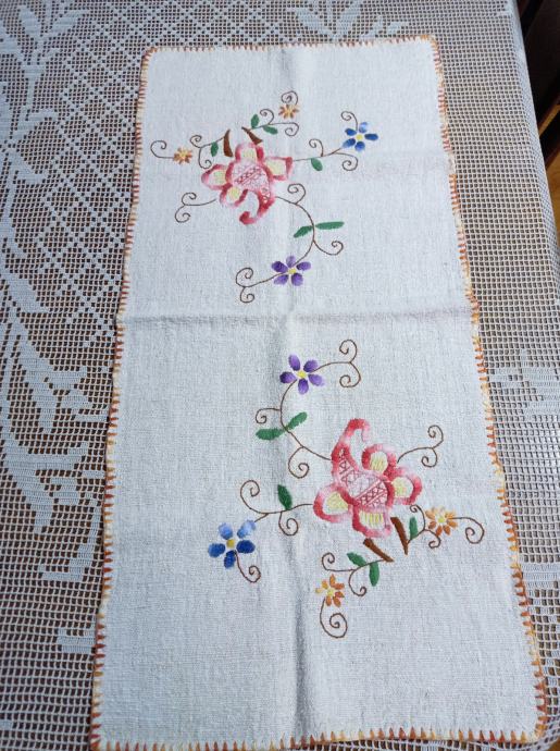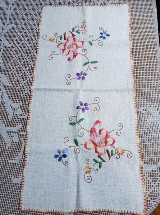 Prodaje se stolnjak od finog domaćeg platna, vezeni rad. Staro i očuvano. Dimenzije 90x45cm. Mogućnost dostave ili slanje poštom. Cijena 49,99€