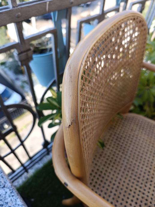 Drvo na naslonima za ruke i naslonu je napuklo. (Potrebno brušenje)