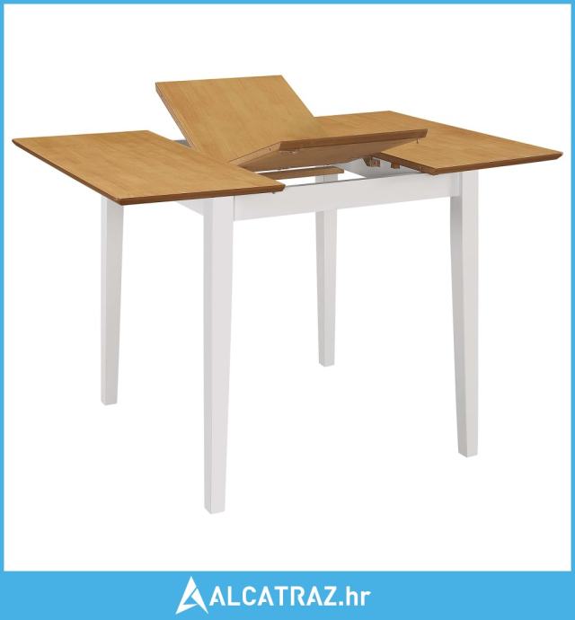 Made of solid rubber wood, the extendable dining table and chairs are very stable and durable. Thanks to its unique design, the table can be extended when extra space is required. The backrests and cushions of the chairs add to seating comfort. This dining set is easy to clean with just a damp cloth.
