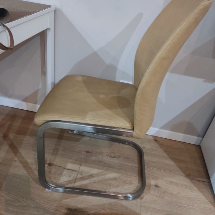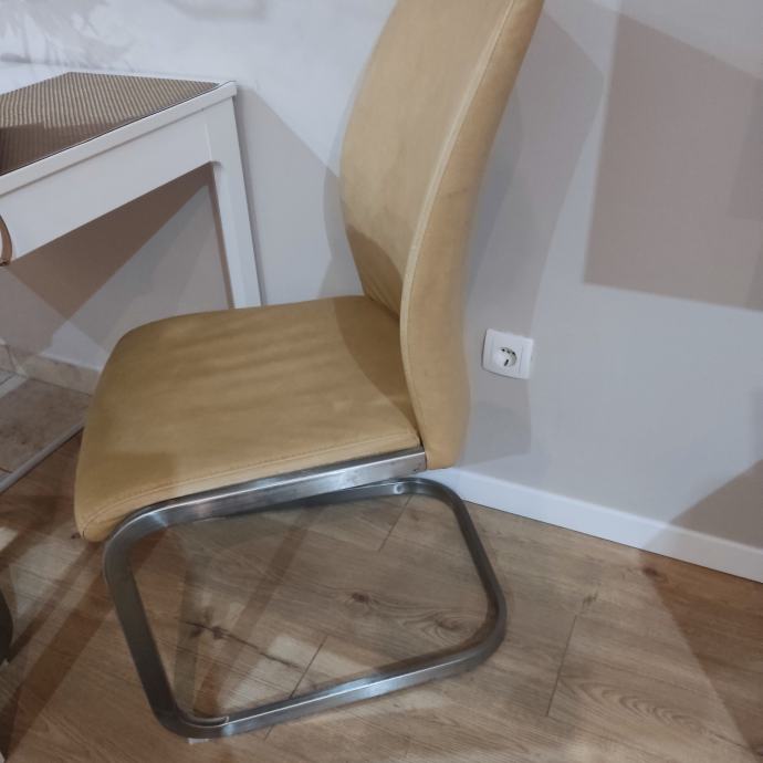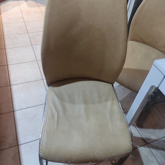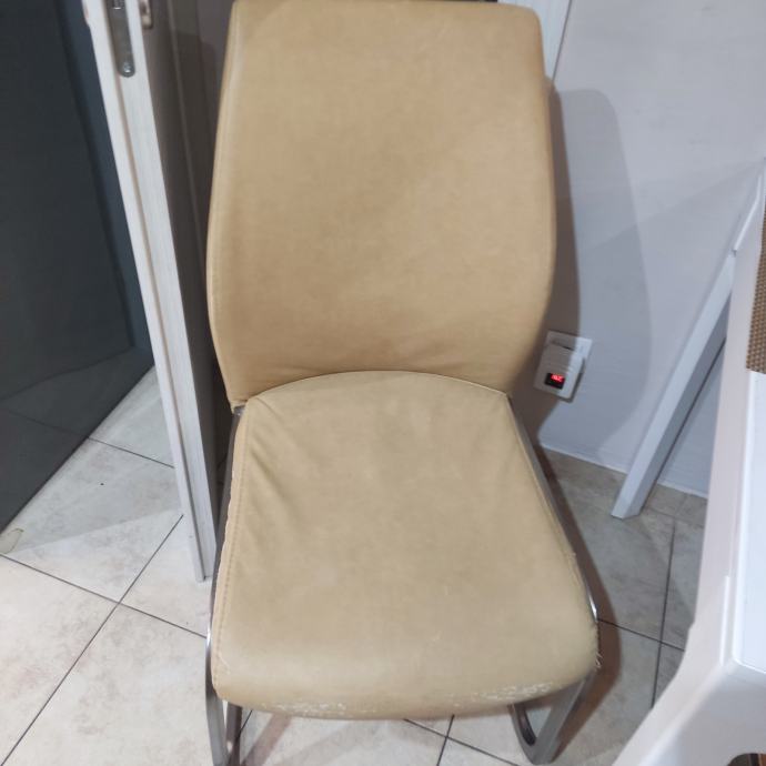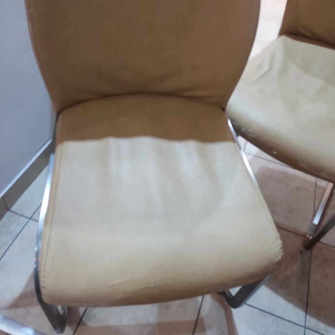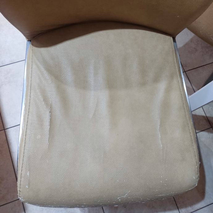 Prodajem 4 stolice za blaovaonicu. Metalna konstrukcija je dobra, no umjetna koža na sjedištu je popucala te je potrebna zamjena. Ako se netko bavi restauracijom, prodajemo sve 4 stolice za 30 eur.