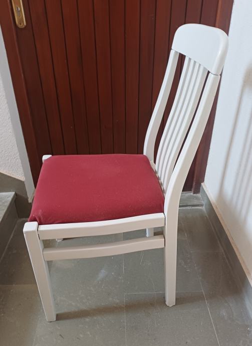 Prodajem 4 stolice od punog drva, uredne, čvrste i izdržljive konstrukcije, lako se uklope s drugim stilovima, bilo da je riječ o blagovaonici, hodniku, spavaćoj ili radnoj sobi, cijena 25 €/ komad, odlično stanje, bez ikakvih oštećenja, osobno preuzimanje u Splitu