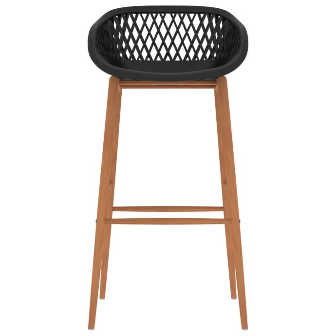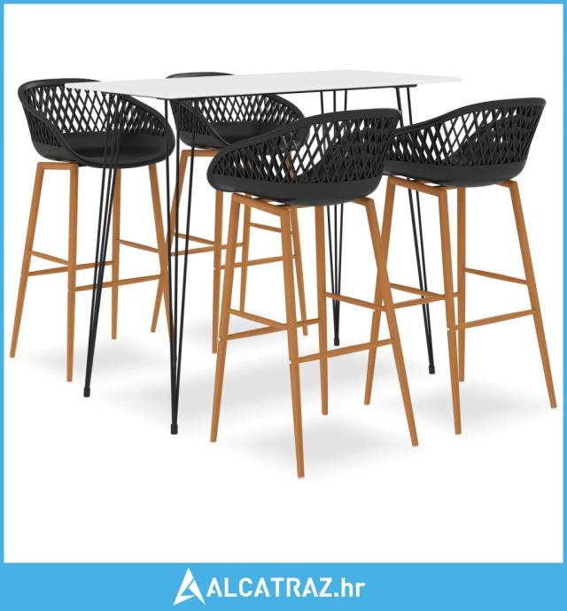 Ploča stola napravljena je od MDF-a koji se lako čisti. Metalni okvir obložen prahom doprinosi stabilnosti i čvrstoći barskog stola. Barski stolci imaju ergonomski dizajnirano sjedalo s ugrađenim niskim naslonom mrežastog izgleda. Napravljene od čvrstog PP-a i poduprte snažnim metalnim nogama s uzorkom drvenog izgleda za prijenos topline, ove stolice za šank čvrste su i izdržljive.