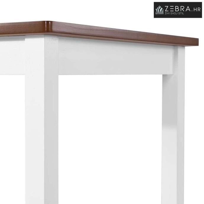 Barski stol ima MDF ploču i čvste drvene noge a stolice su u potpunosti izrađene od masivnog drva za čvrstoću i izdržljivost. Barski set je usavršen prekrasnom obradom brušenjem, bojenjem i lakiranjem kako bi se pružio profinjen izgled. Stol i stolice, lako se čiste s vlažnom krpom. Sklapanje je jednostavno.