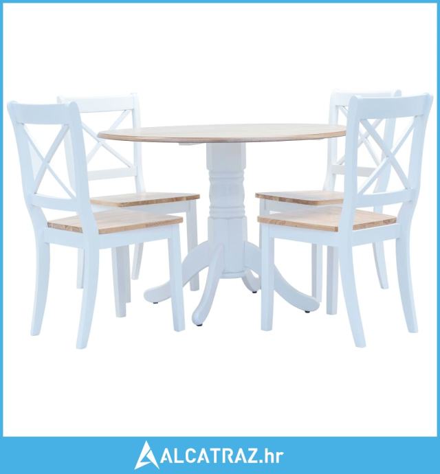 5-dijelni blagovaonski set od drva kaučukovca bijelo-smeđi - NOVO
