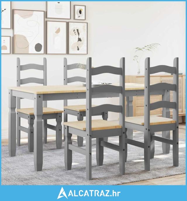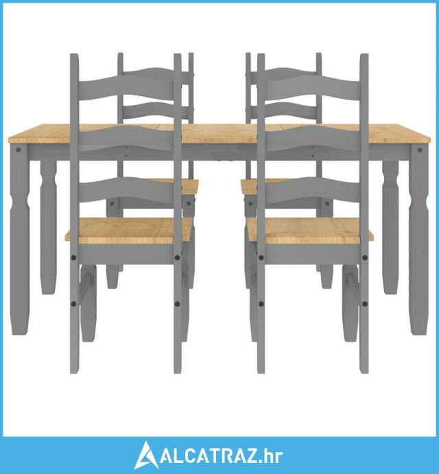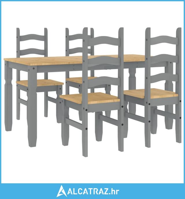 5-dijelni blagovaonski set Panama od masivne borovine sivi - NOVO